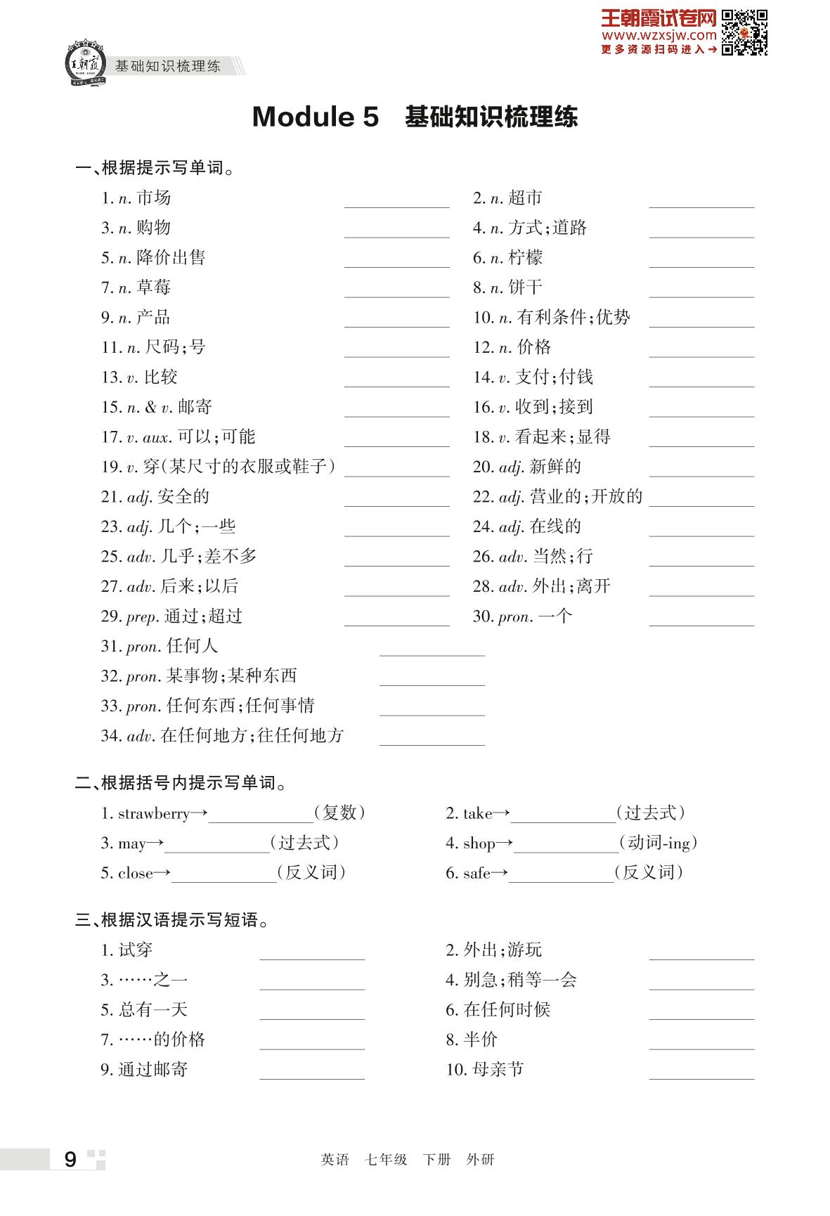 王朝霞期末过课本——Module 5 基础知识梳理练七年级下册英语(外研版)_R230424150658583