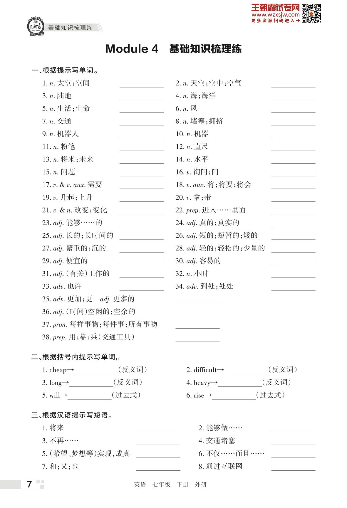 王朝霞期末过课本——Module 4 基础知识梳理练七年级下册英语(外研版)_R230424150659113