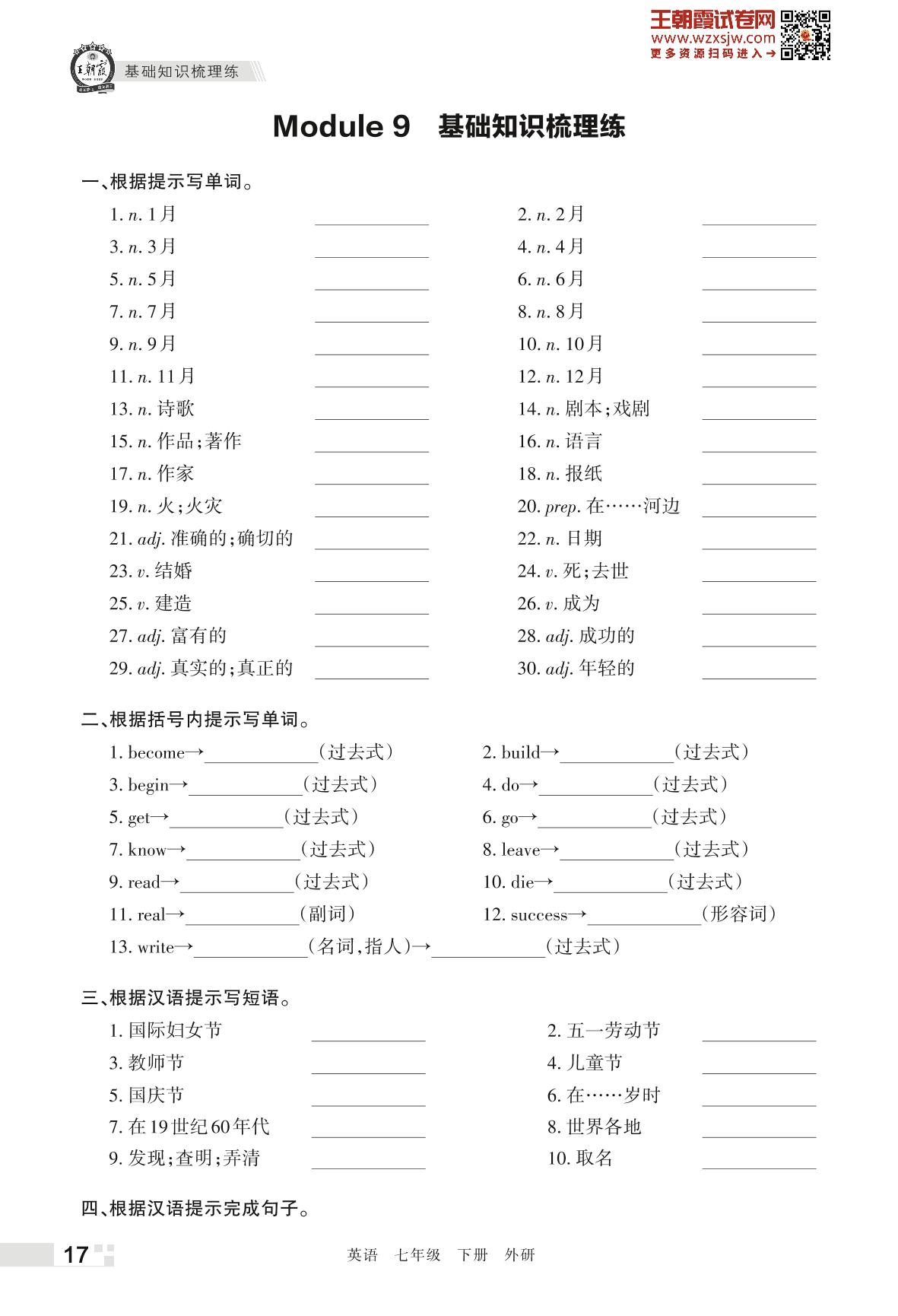 王朝霞期末过课本——Module 9 基础知识梳理练七年级下册英语(外研版)_R230424150659865
