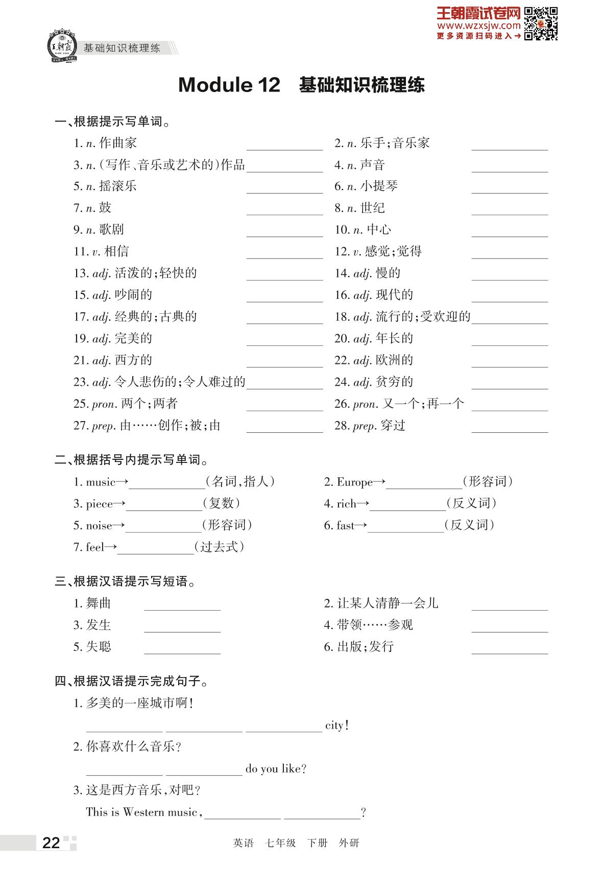 王朝霞期末过课本——Module 12 基础知识梳理练七年级下册英语(外研版)_R230424150659176