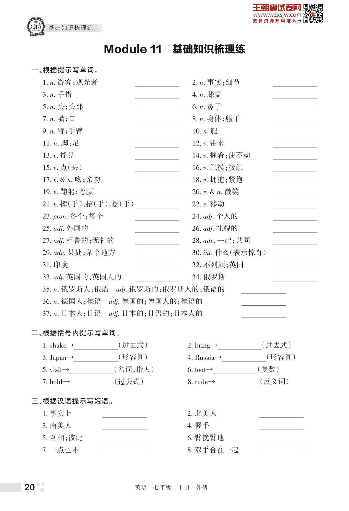王朝霞期末过课本——Module 11 基础知识梳理练七年级下册英语(外研版)_R230424150659938