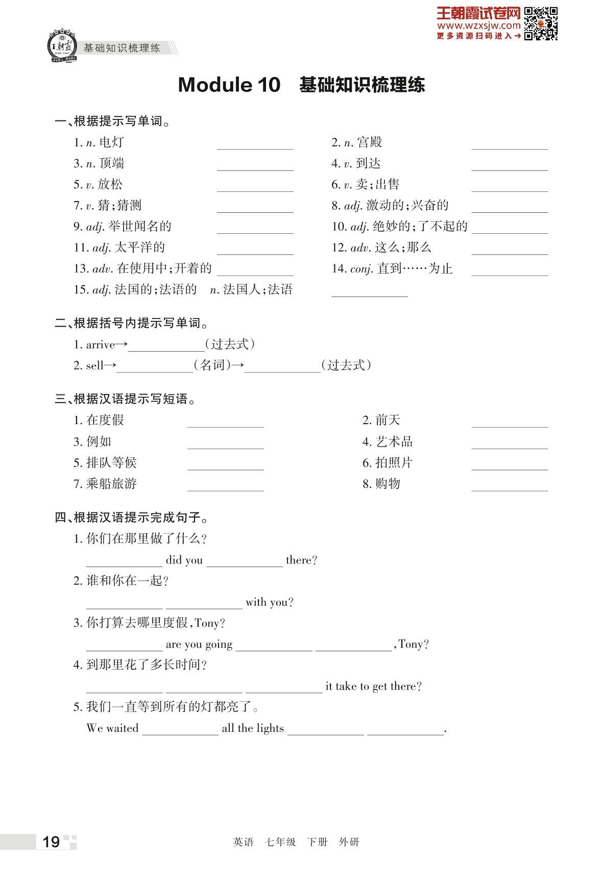 王朝霞期末过课本——Module 10 基础知识梳理练七年级下册英语(外研版)_R230424150700384