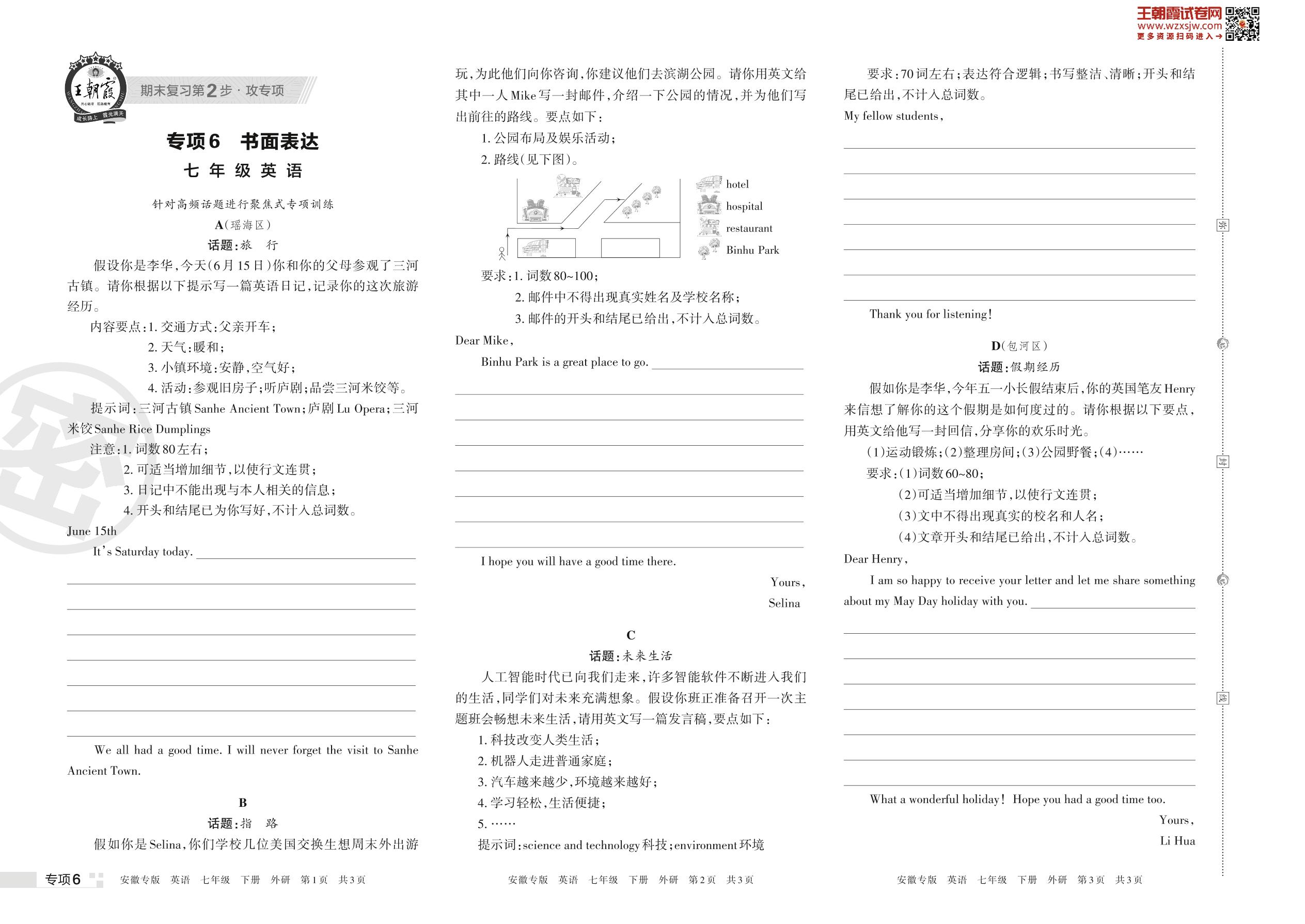 王朝霞期末专项卷——书面表达七年级下册英语(外研版)_R230424150700812【6】