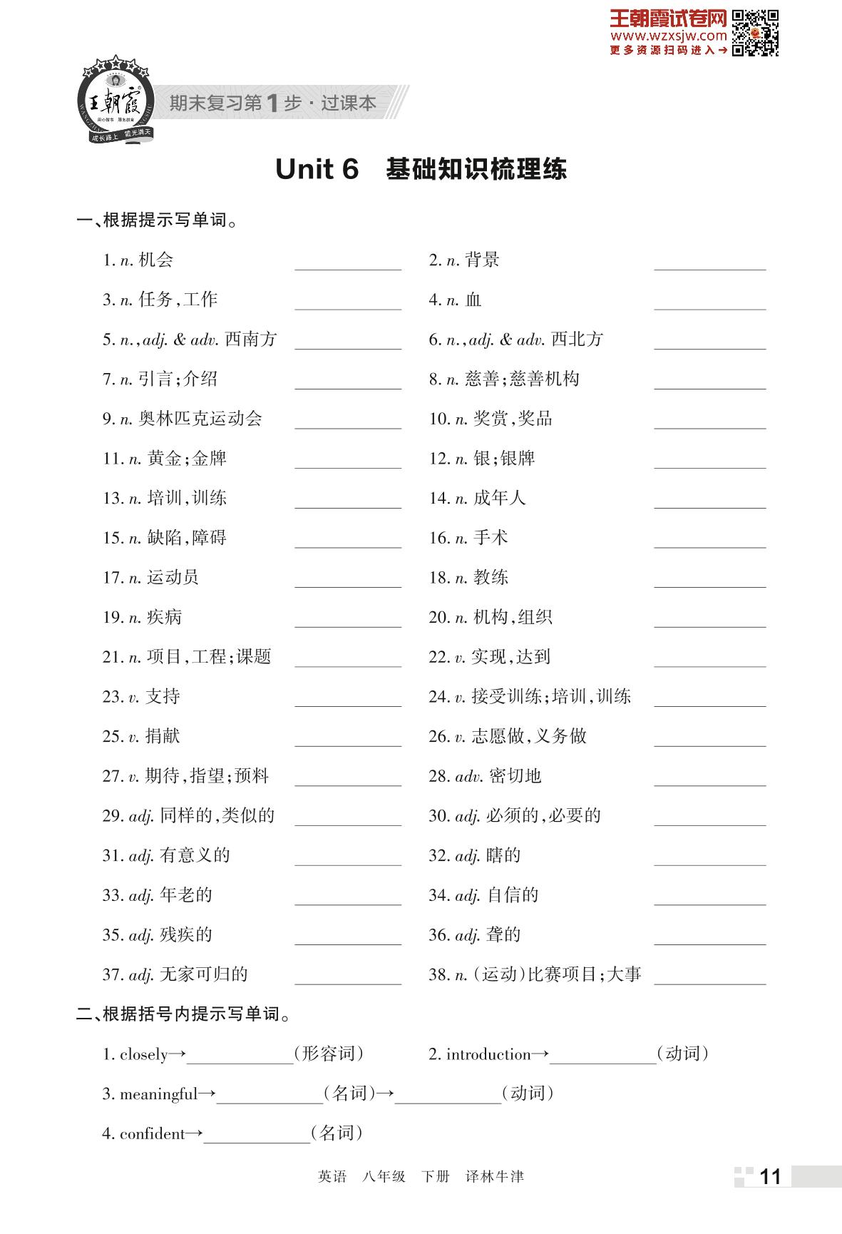 王朝霞期末过课本——Unit 6 基础知识梳理练八年级下册英语(译林牛津版)_R230424152214072