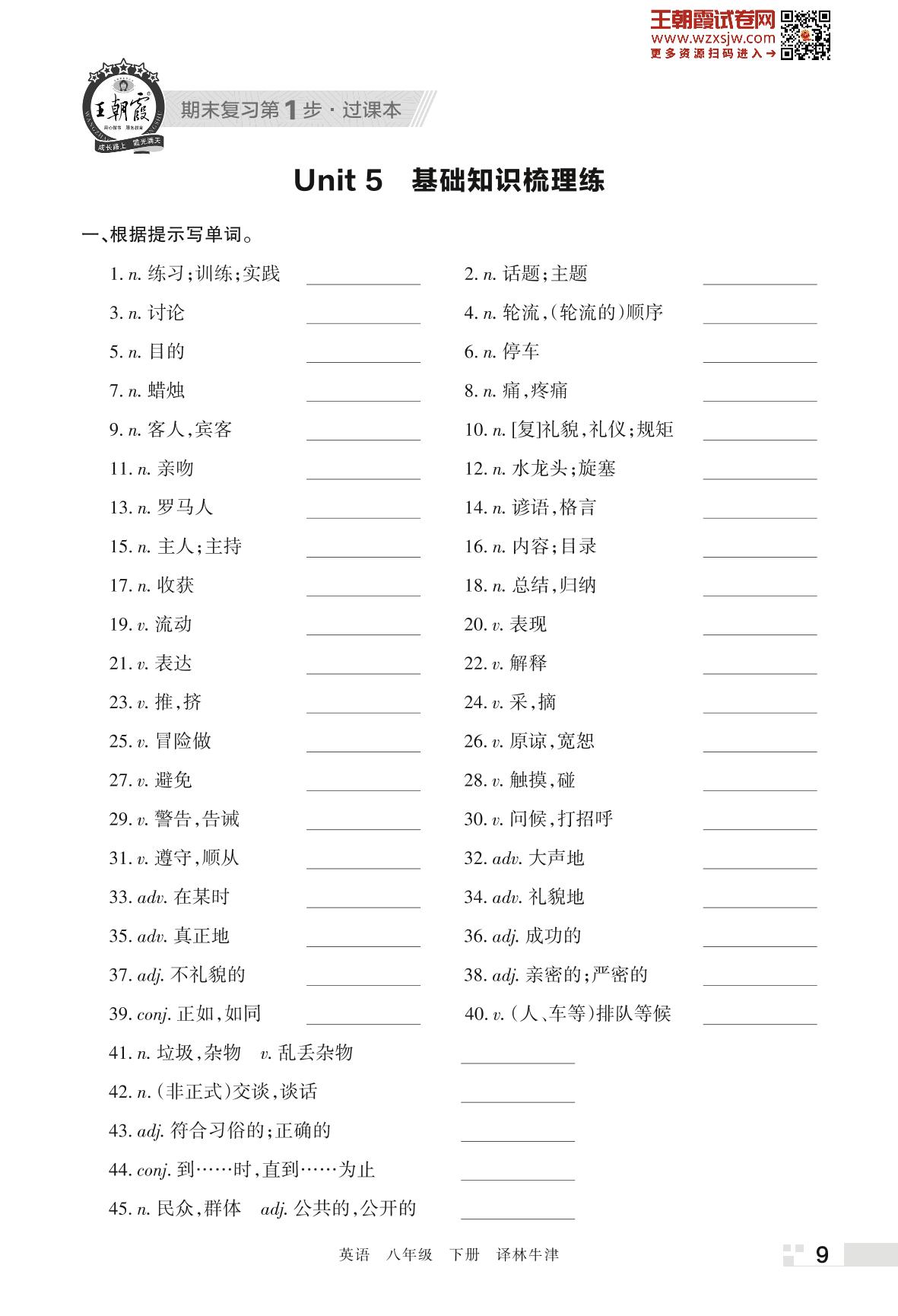 王朝霞期末过课本——Unit 5 基础知识梳理练八年级下册英语(译林牛津版)_R230424152214446
