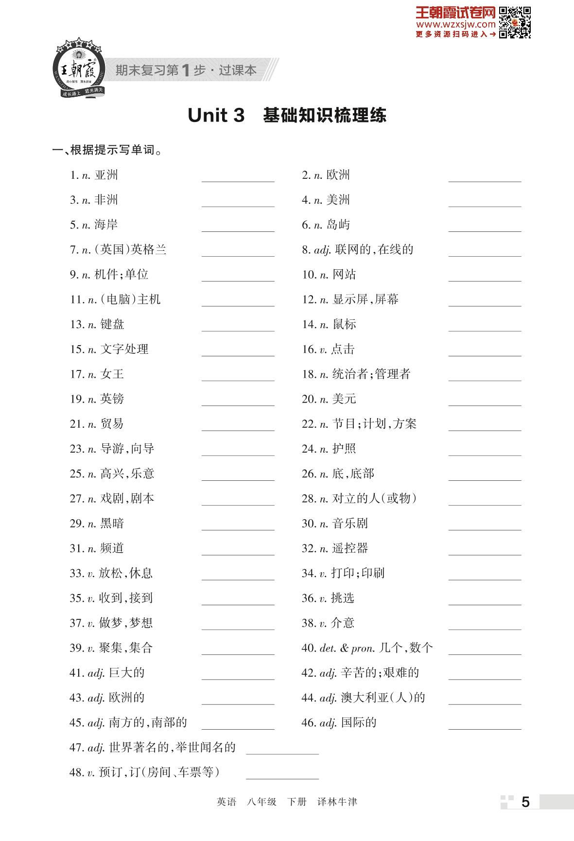 王朝霞期末过课本——Unit 3 基础知识梳理练八年级下册英语(译林牛津版)_R230424152214957