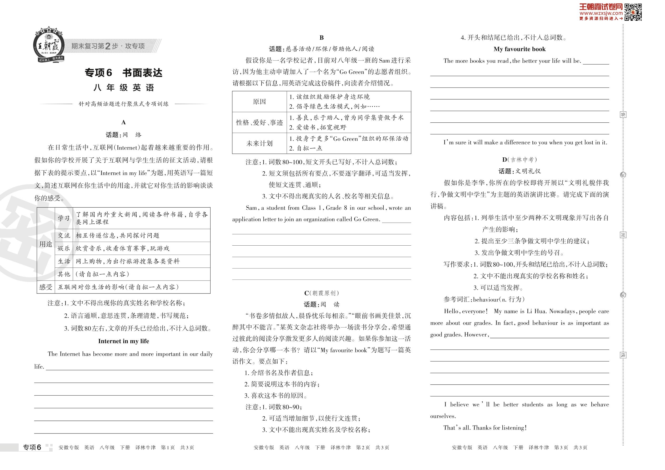 王朝霞期末专项卷——书面表达八年级下册英语(译林牛津版)_R230424152215250【6】
