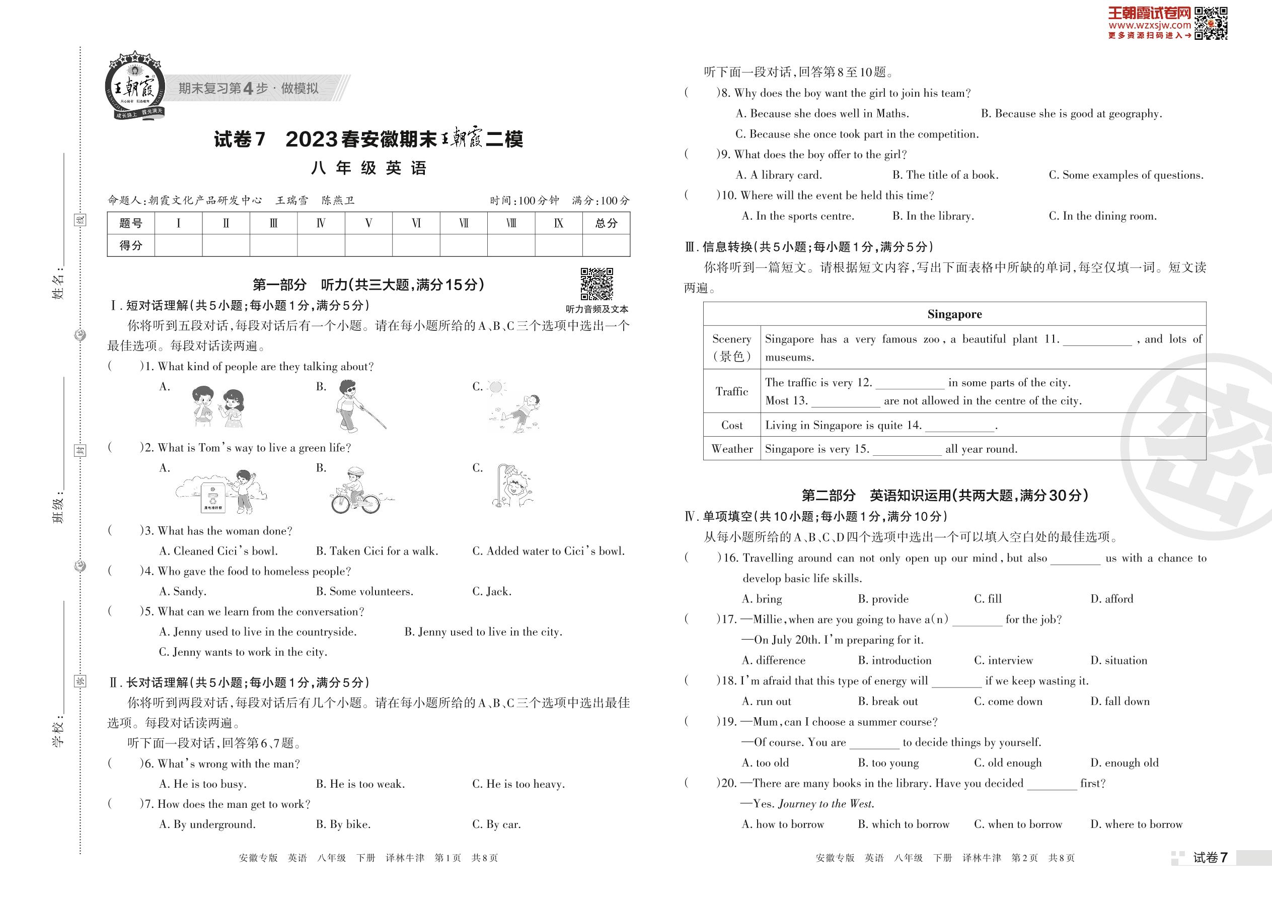 王朝霞期末模拟卷八年级下册英语(译林牛津版)_R230424152216080【7】