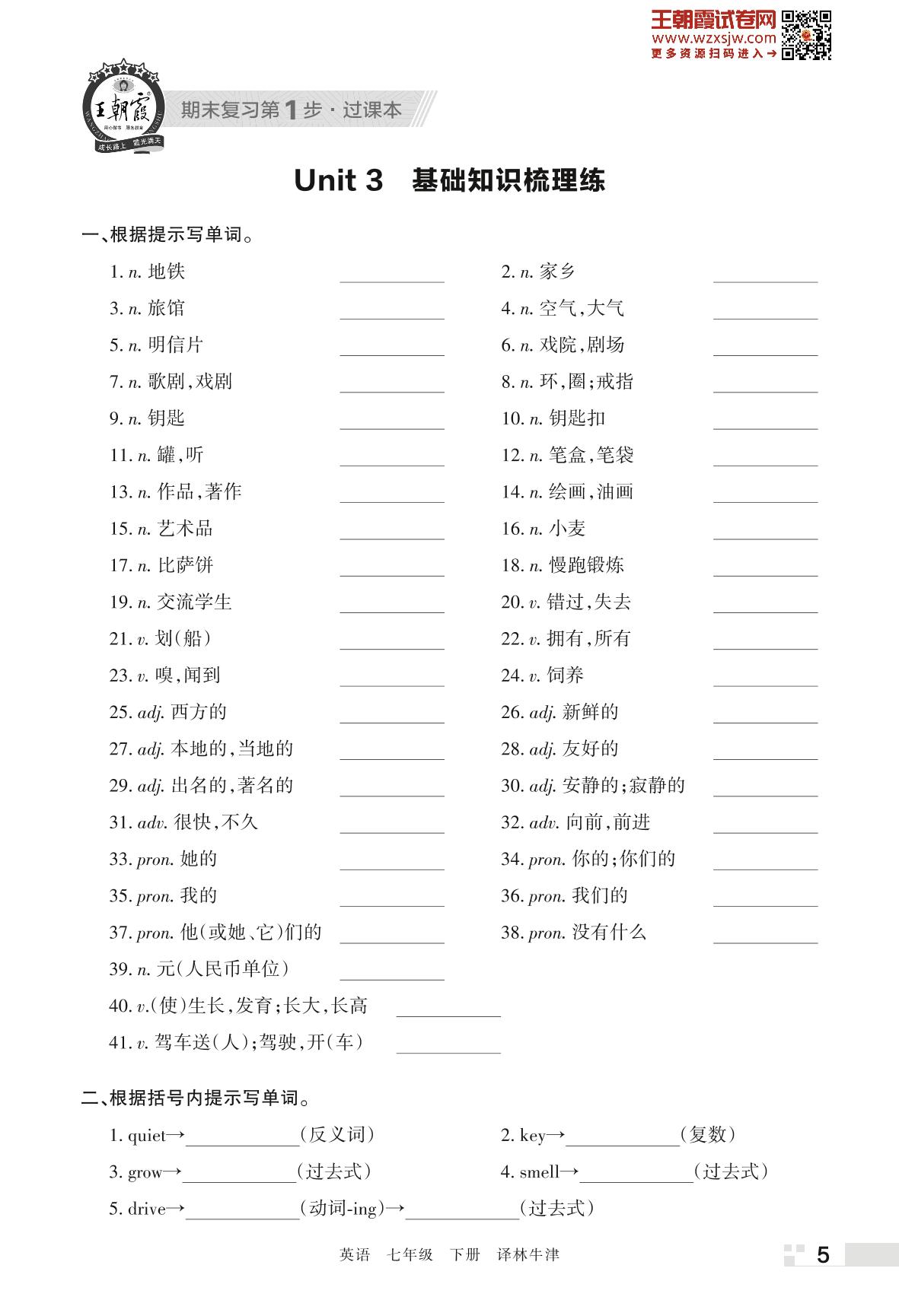 王朝霞期末过课本——Unit 3 基础知识梳理练七年级下册英语(译林牛津版)_R230424152941767