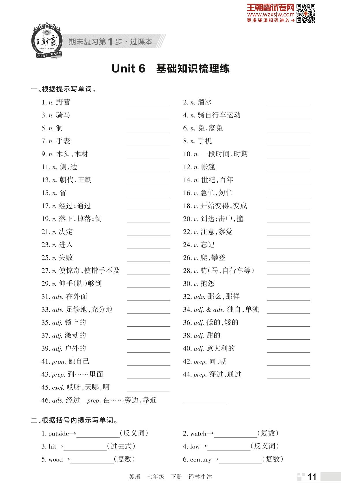 王朝霞期末过课本——Unit 6 基础知识梳理练七年级下册英语(译林牛津版)_R230424152941271