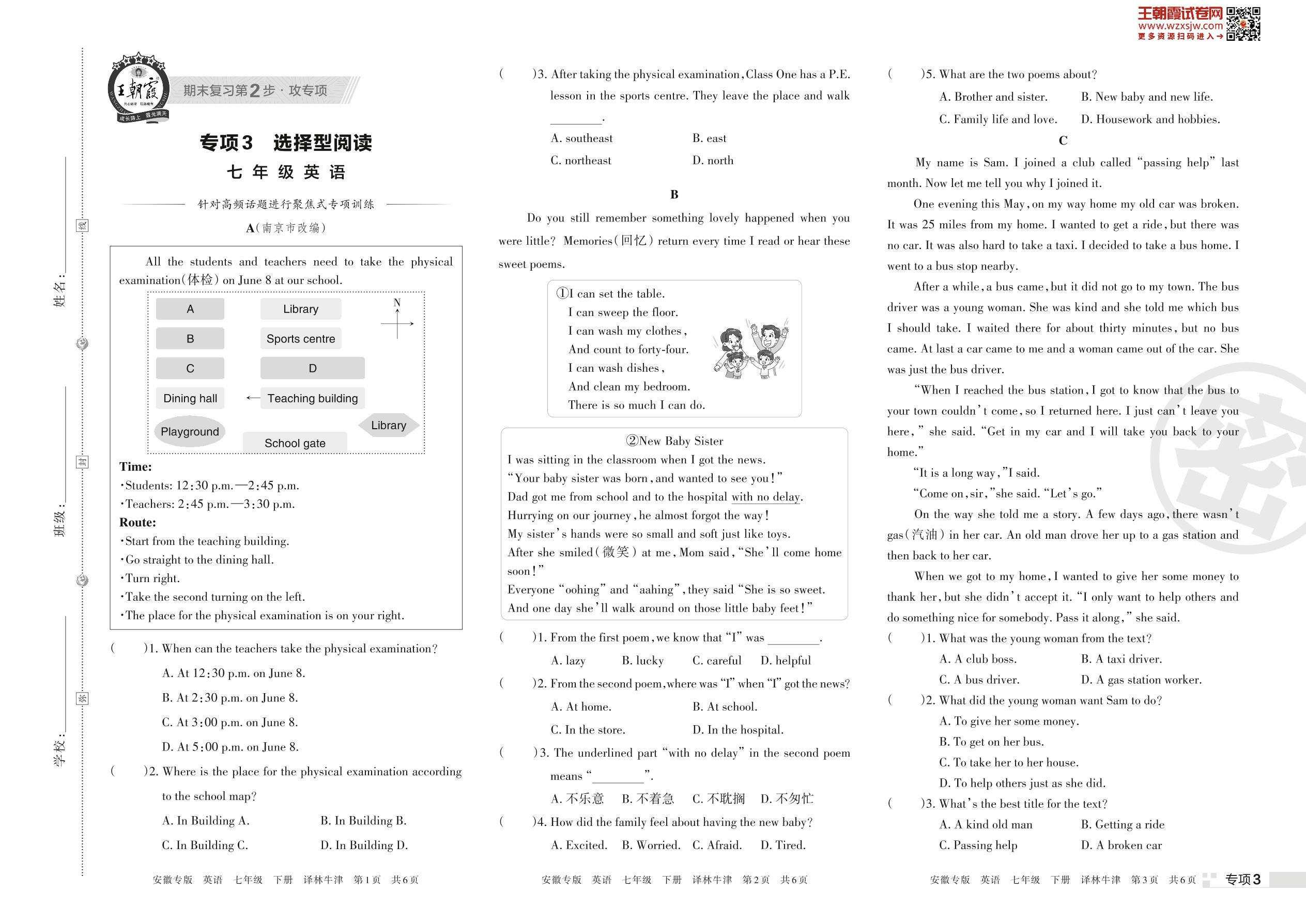 王朝霞期末专项卷——选择型阅读七年级下册英语(译林牛津版)_R230424152942226【3】