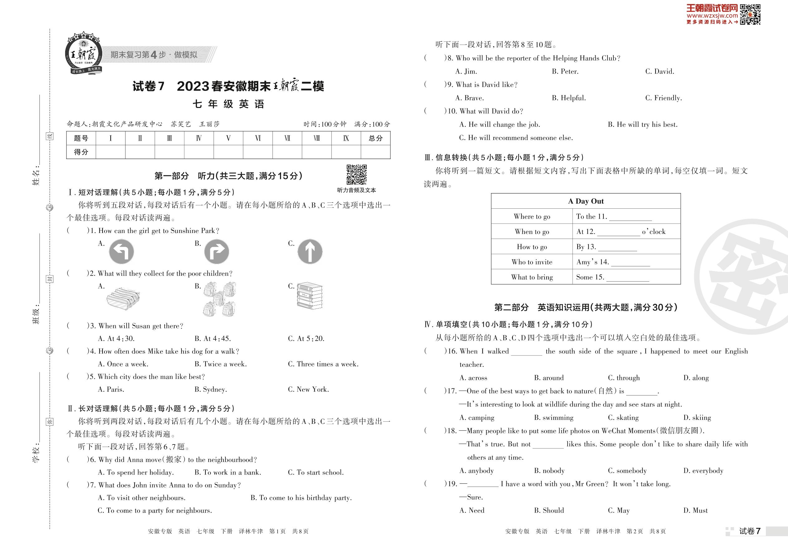 王朝霞期末模拟卷七年级下册英语(译林牛津版)_R230424152943705【7】