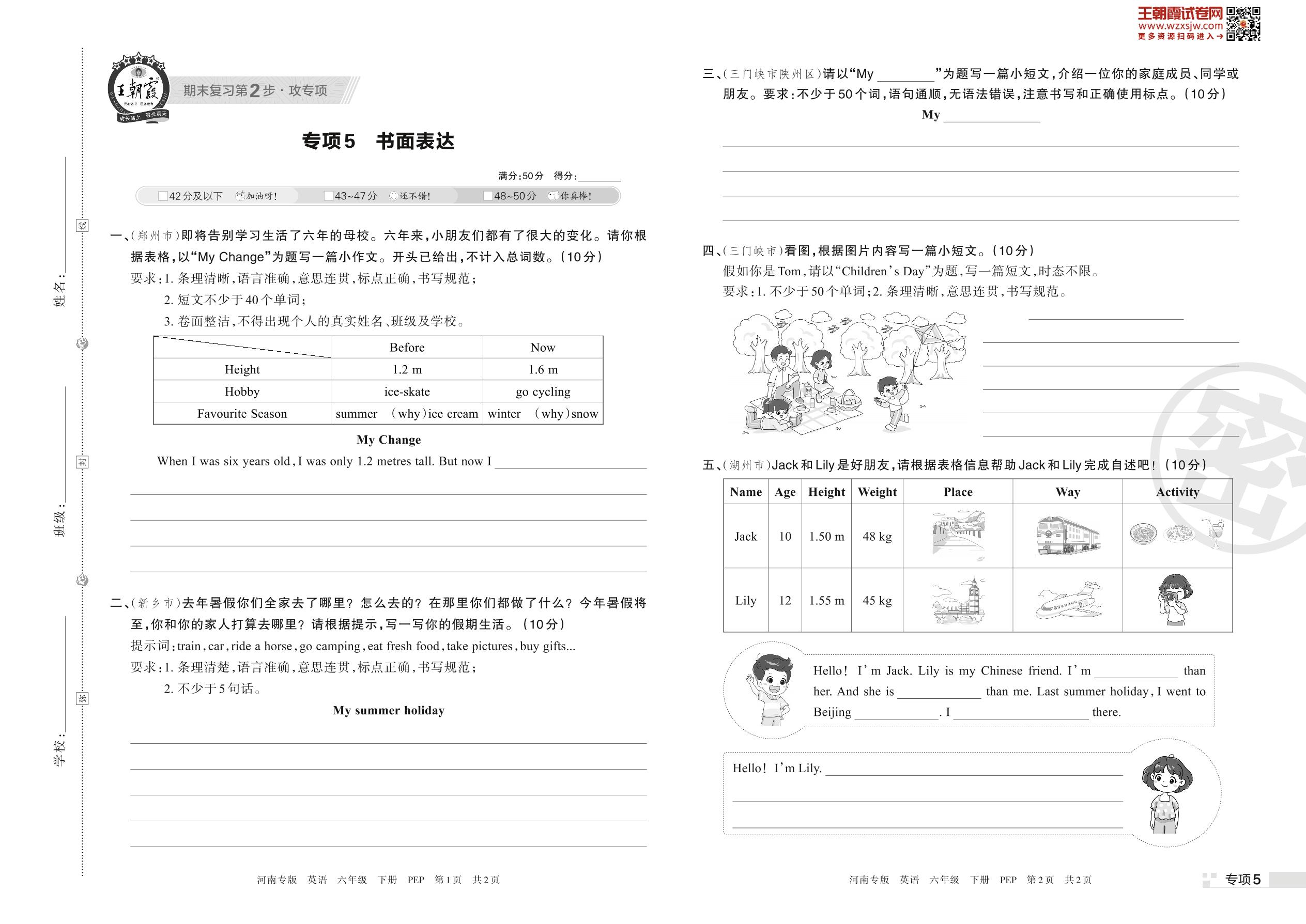 王朝霞期末专项卷——书面表达六年级下册英语(PEP版)_R230424162418775【5】