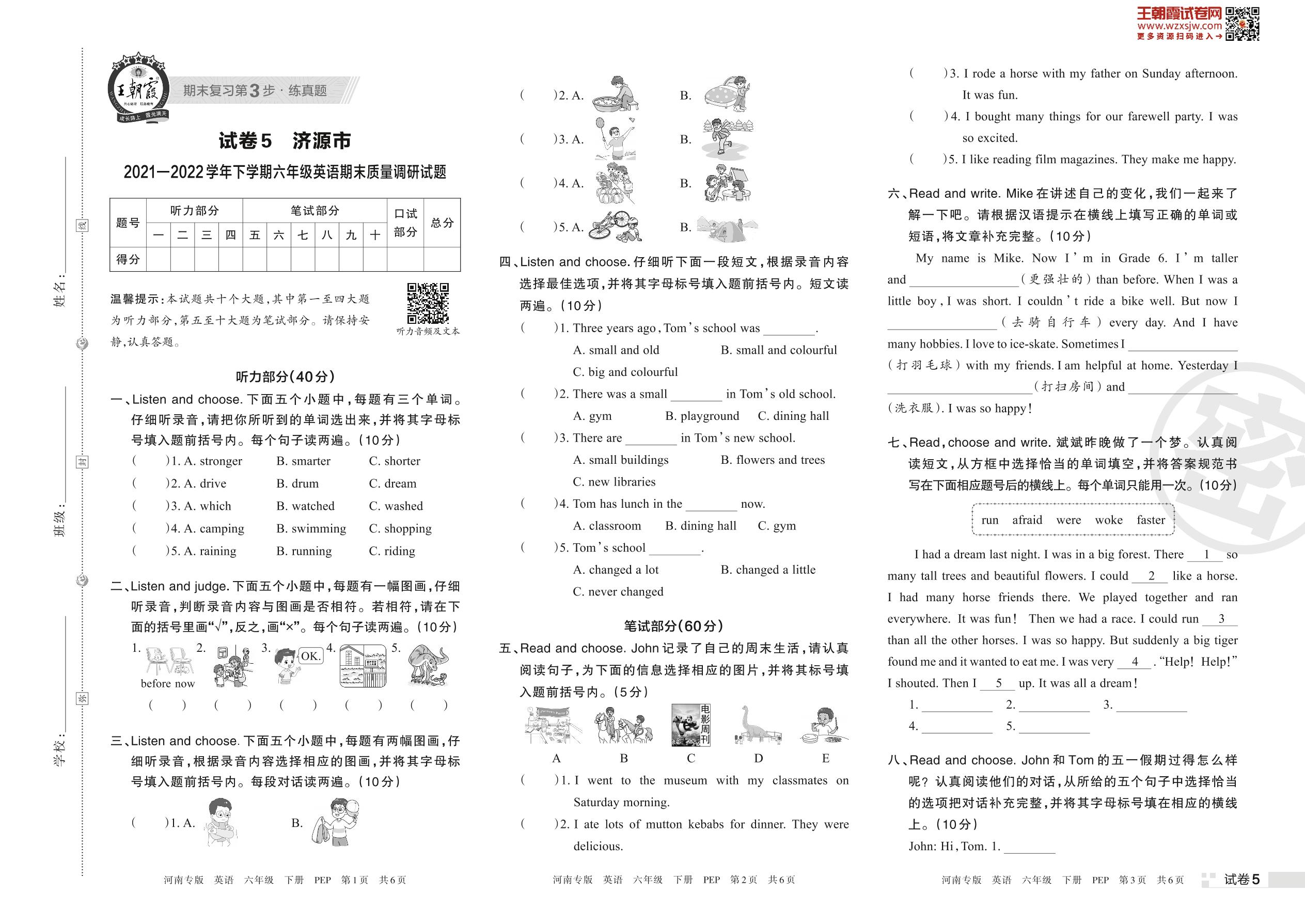 济源市2021—2022学年下学期六年级英语期末质量调研试题(PEP版)【5】