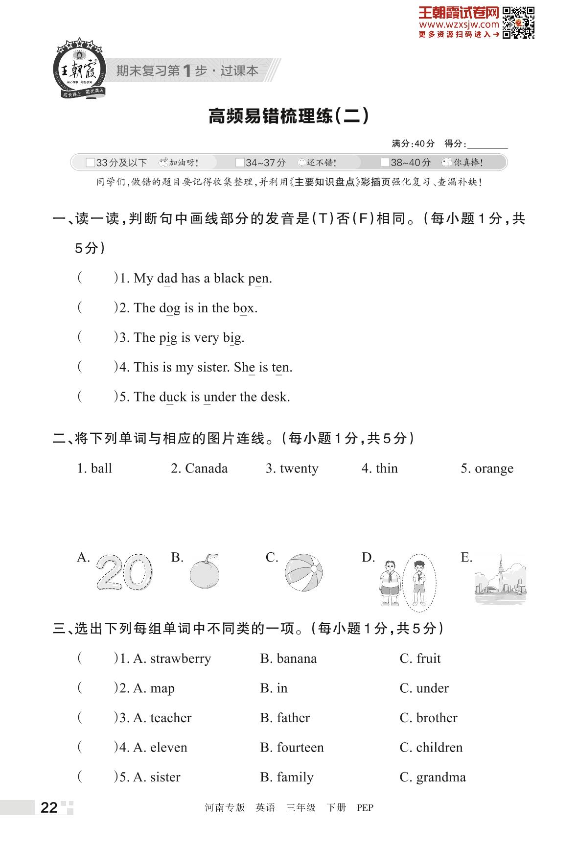 王朝霞期末过课本——高频易错梳理练(二)三年级下册英语(PEP版)_R230424165352476