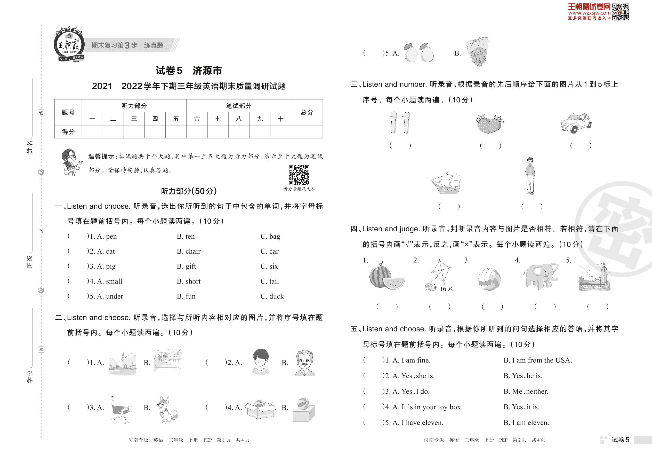 济源市2021—2022学年下期三年级英语期末质量调研试题(PEP版)【5】