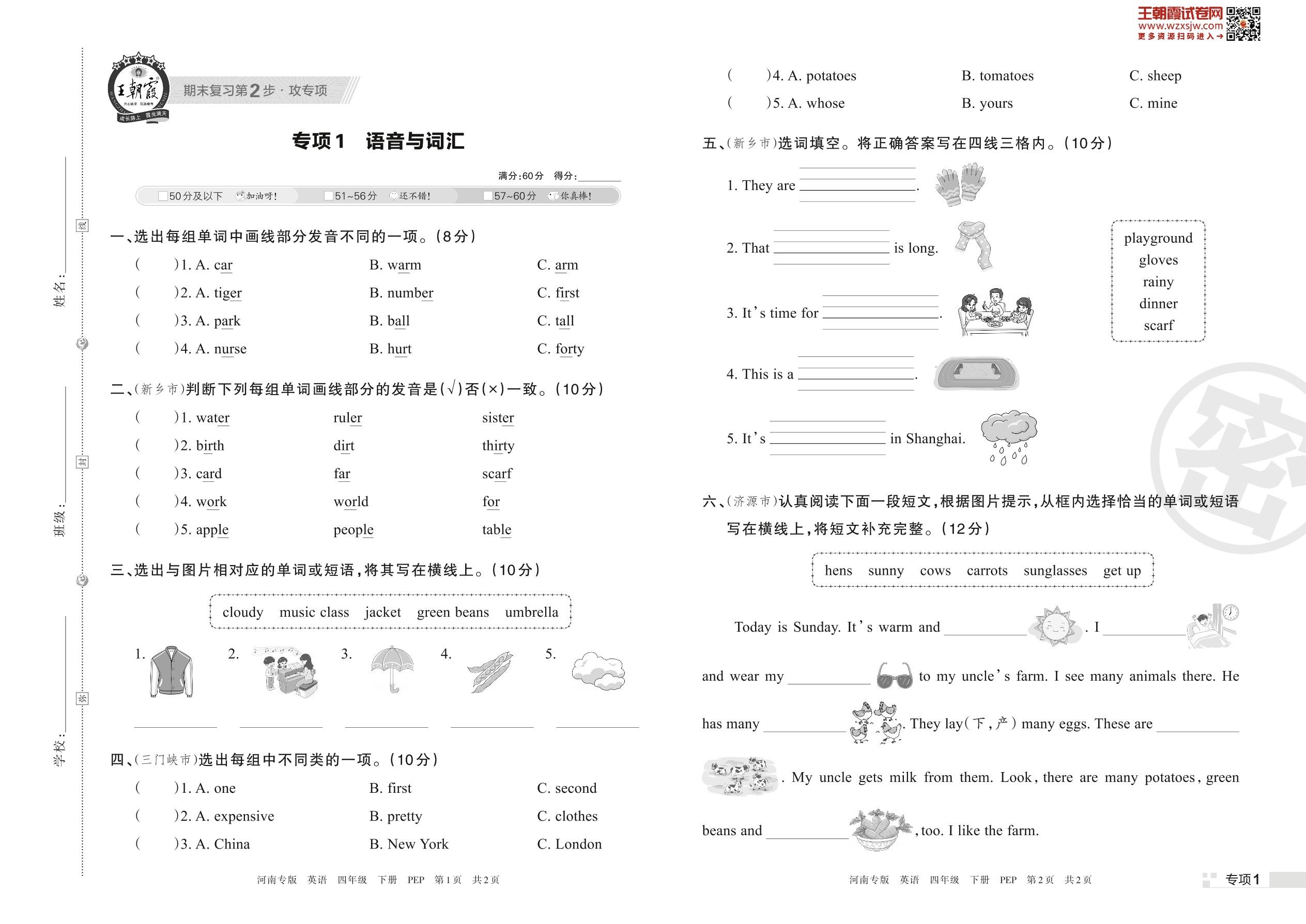 王朝霞期末专项卷——语音与词汇四年级下册英语(PEP版)_R230424170529743【1】