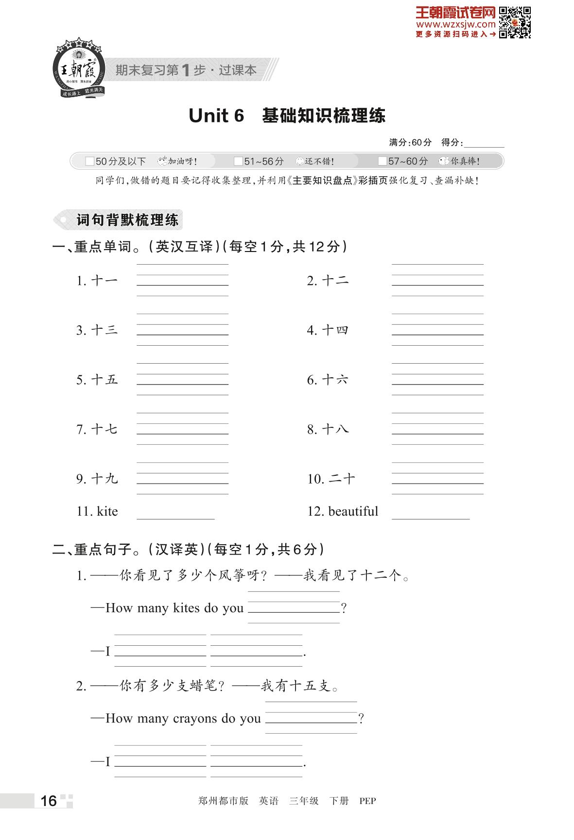 王朝霞期末过课本——Unit 6 基础知识梳理练三年级下册英语(PEP版)_R230424171825632