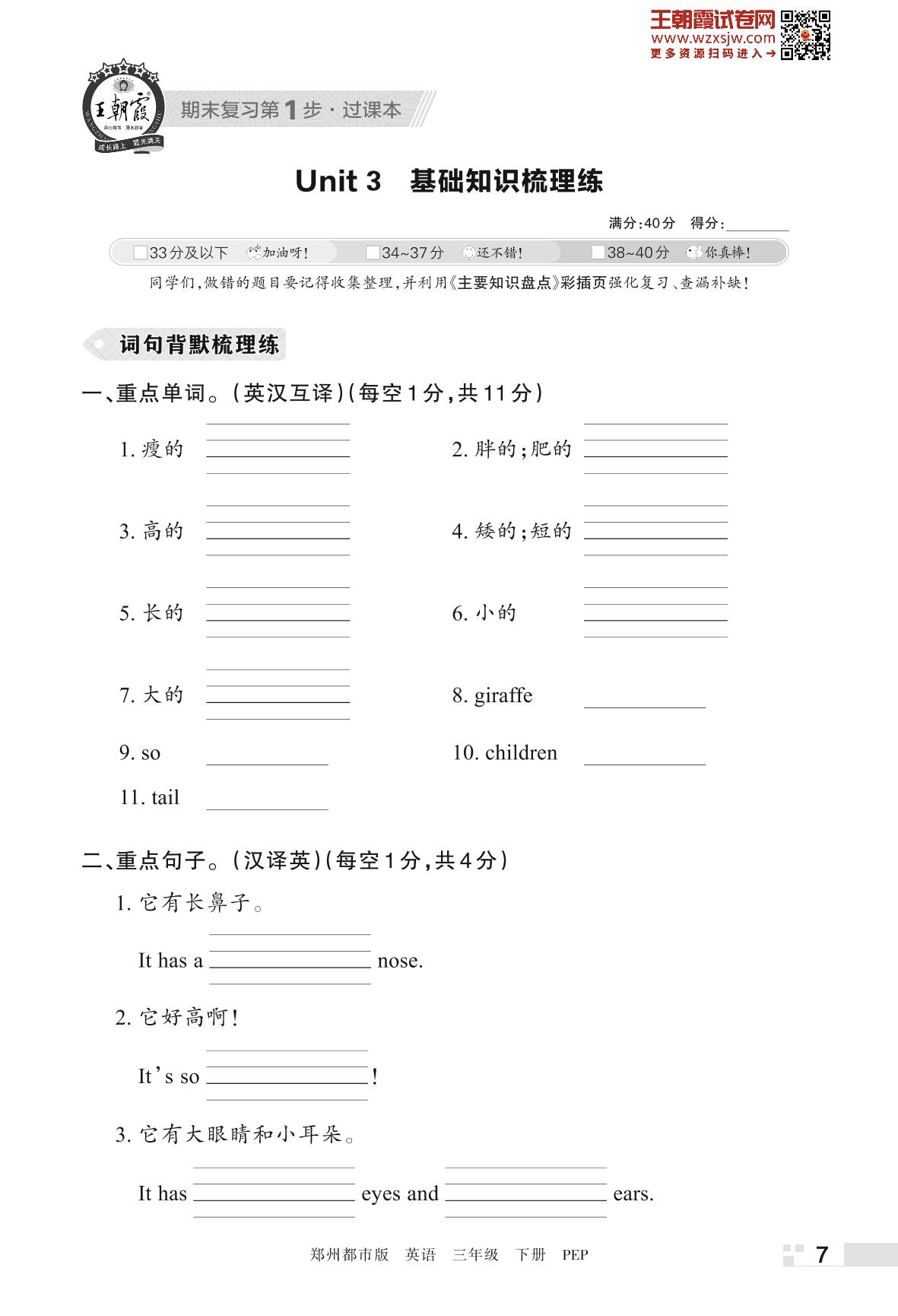 王朝霞期末过课本——Unit 3 基础知识梳理练三年级下册英语(PEP版)_R230424171825567