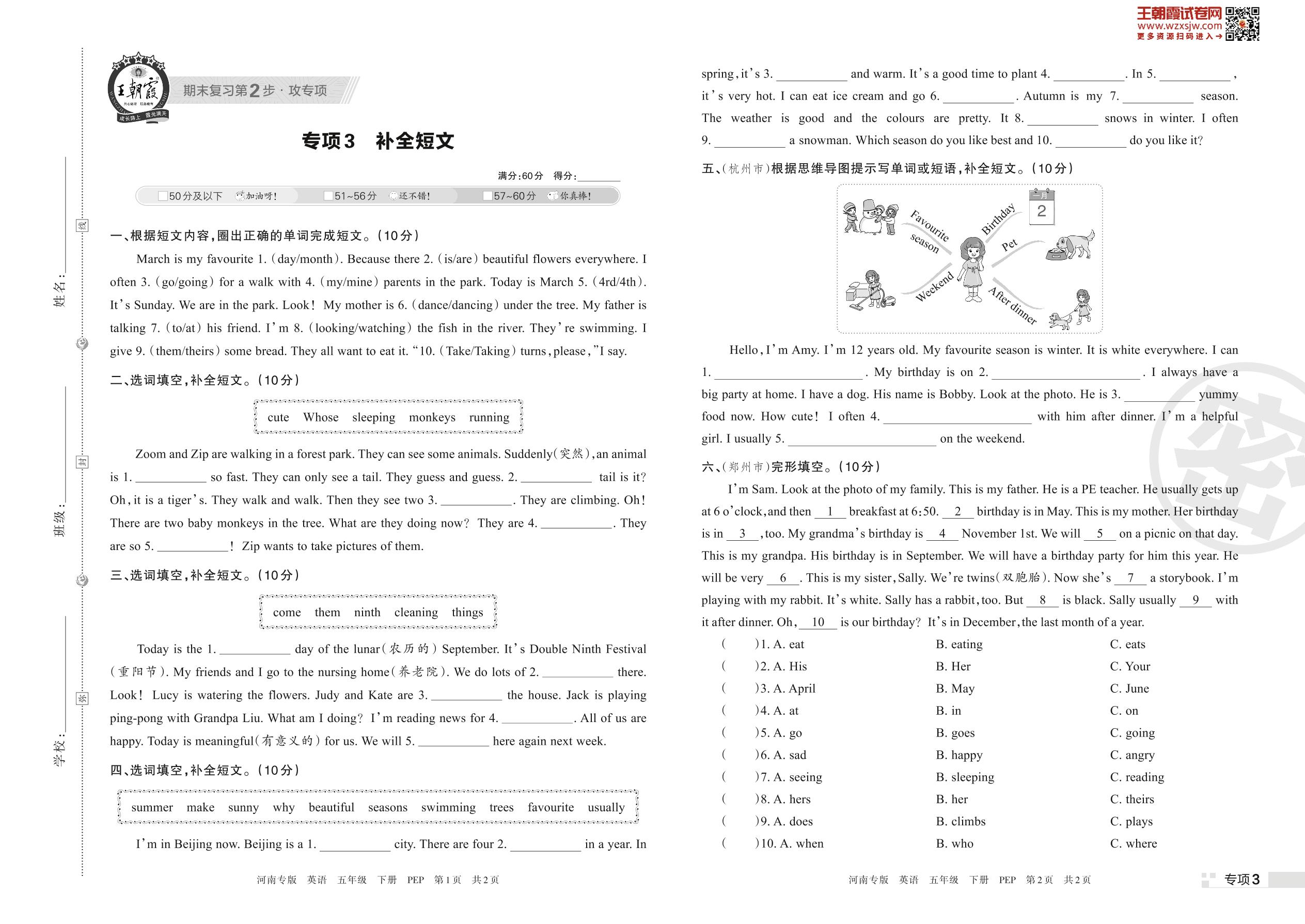 王朝霞期末专项卷——补全短文五年级下册英语(PEP版)_R230424171832231【3】