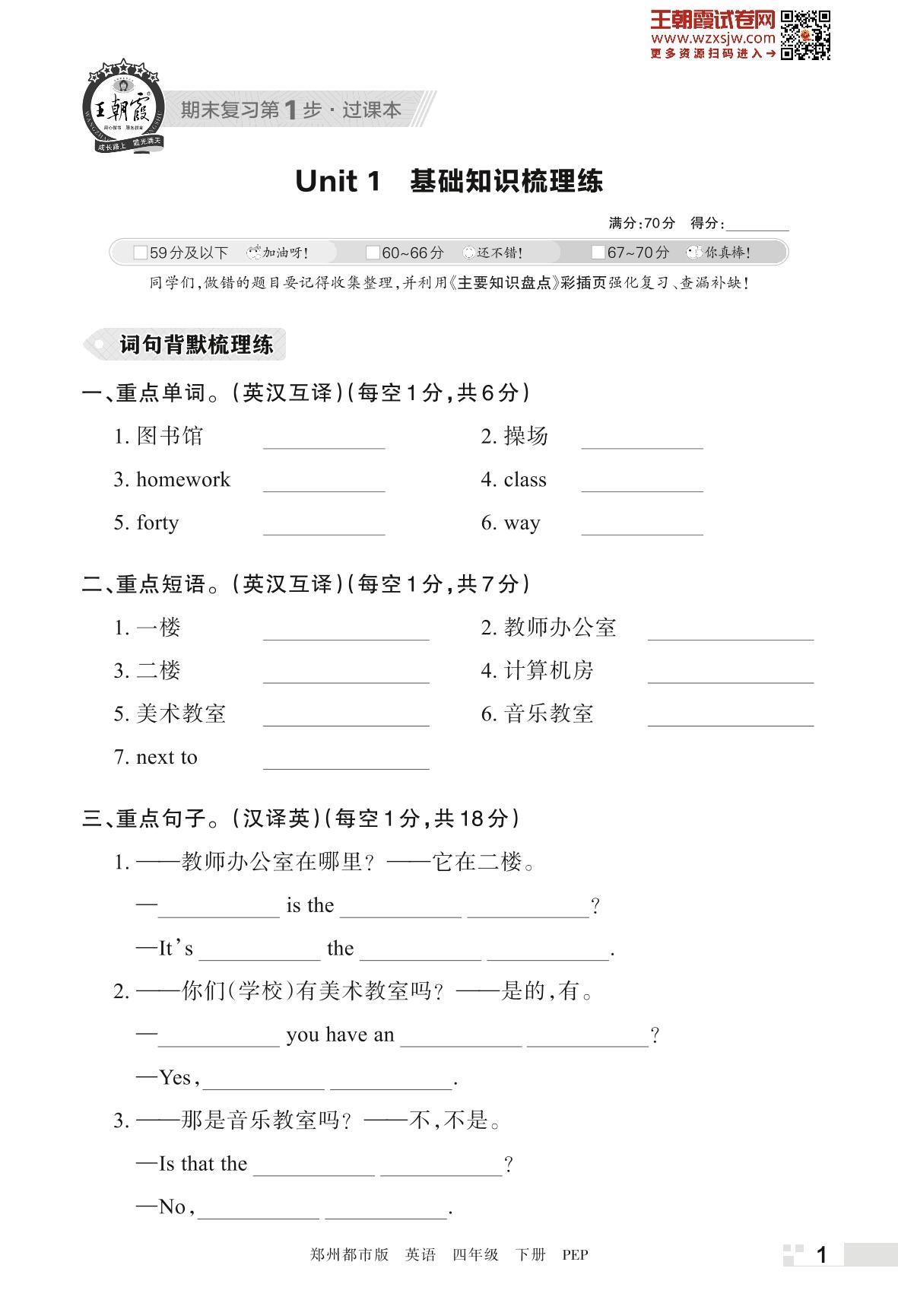 王朝霞期末过课本——Unit 1 基础知识梳理练四年级下册英语(PEP版)_R230424172307518
