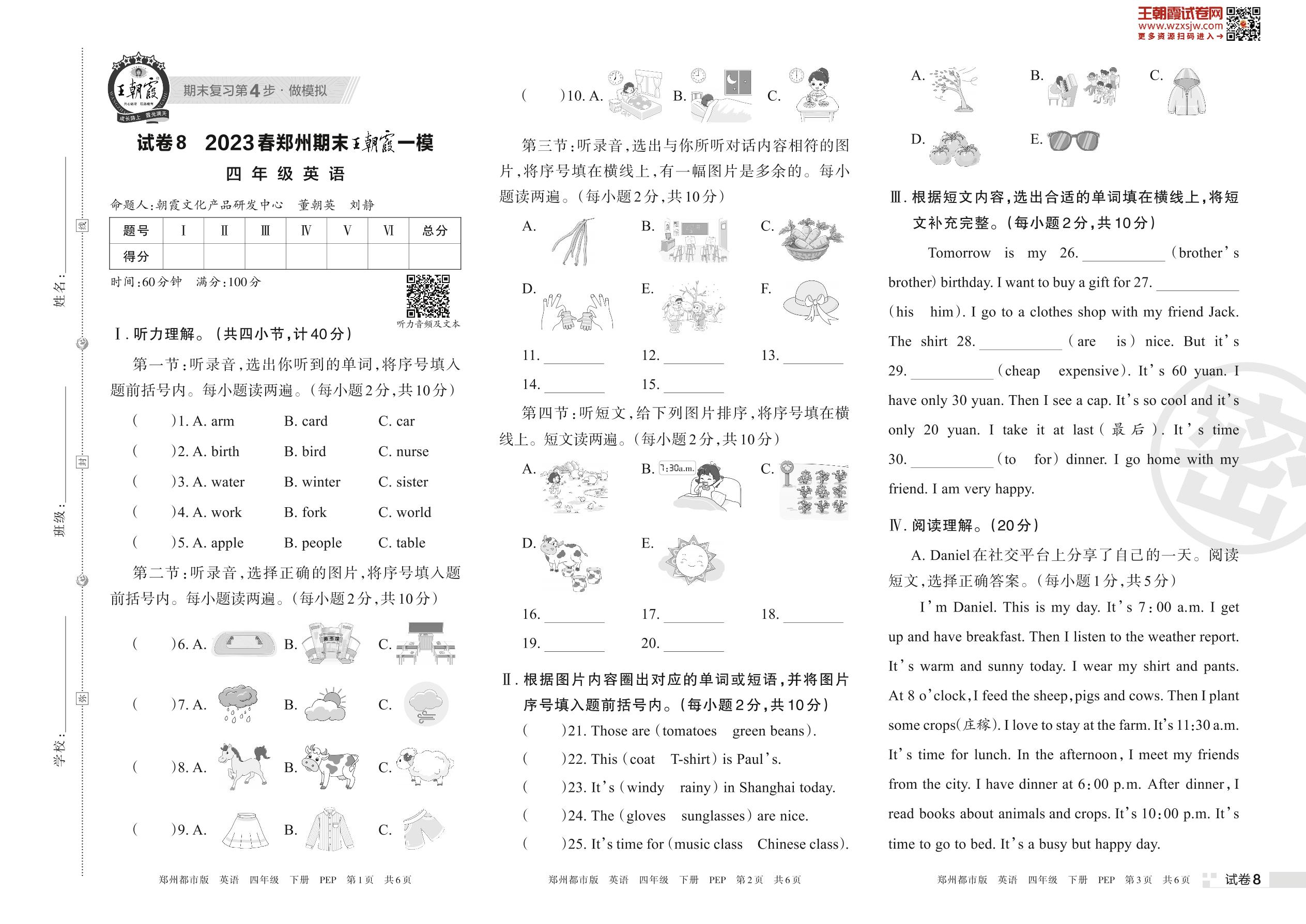 王朝霞期末模拟卷四年级下册英语(PEP版)_R230424172309346【8】