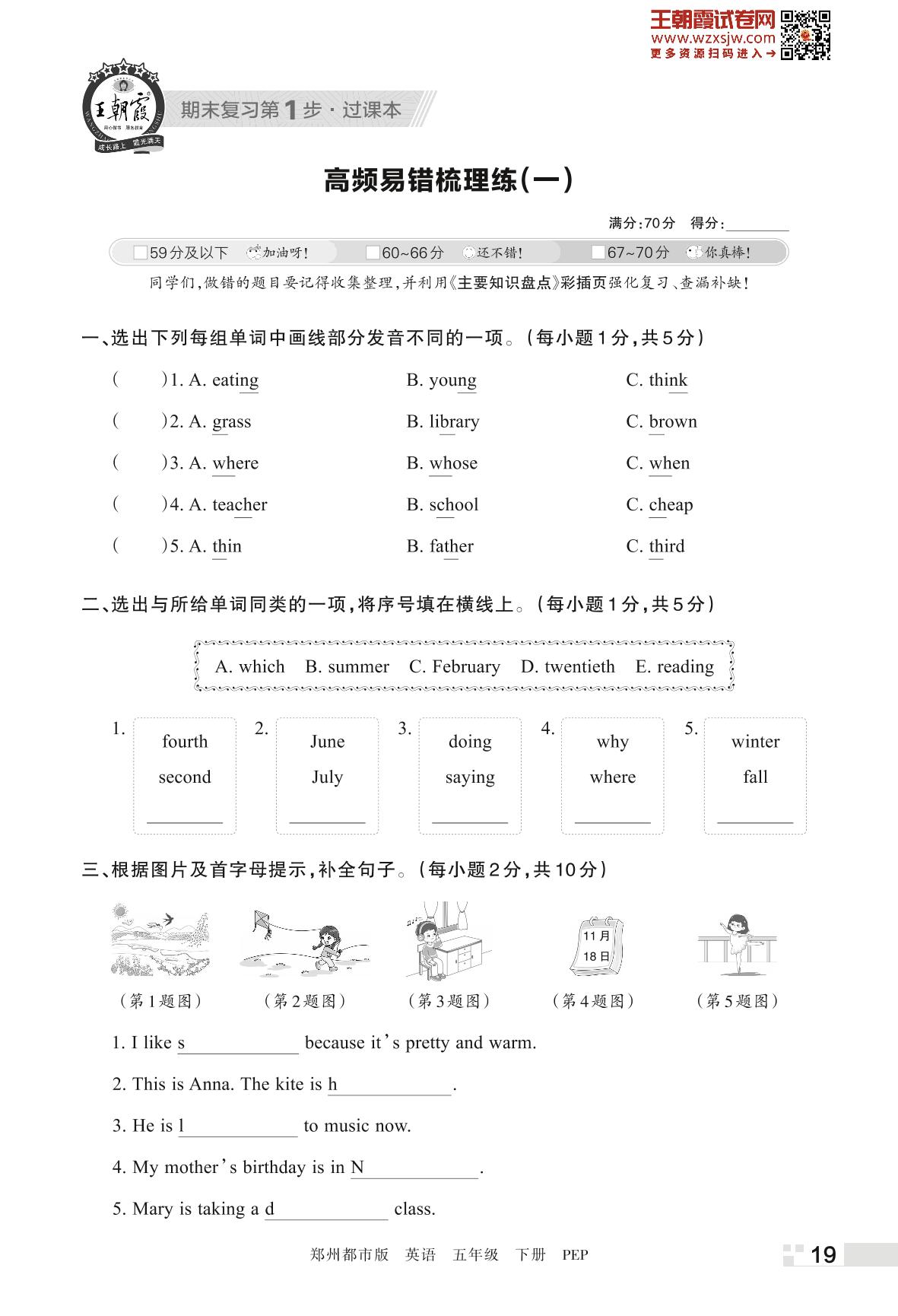 王朝霞期末过课本——高频易错梳理练(一)五年级下册英语(PEP版)_R230424172735918