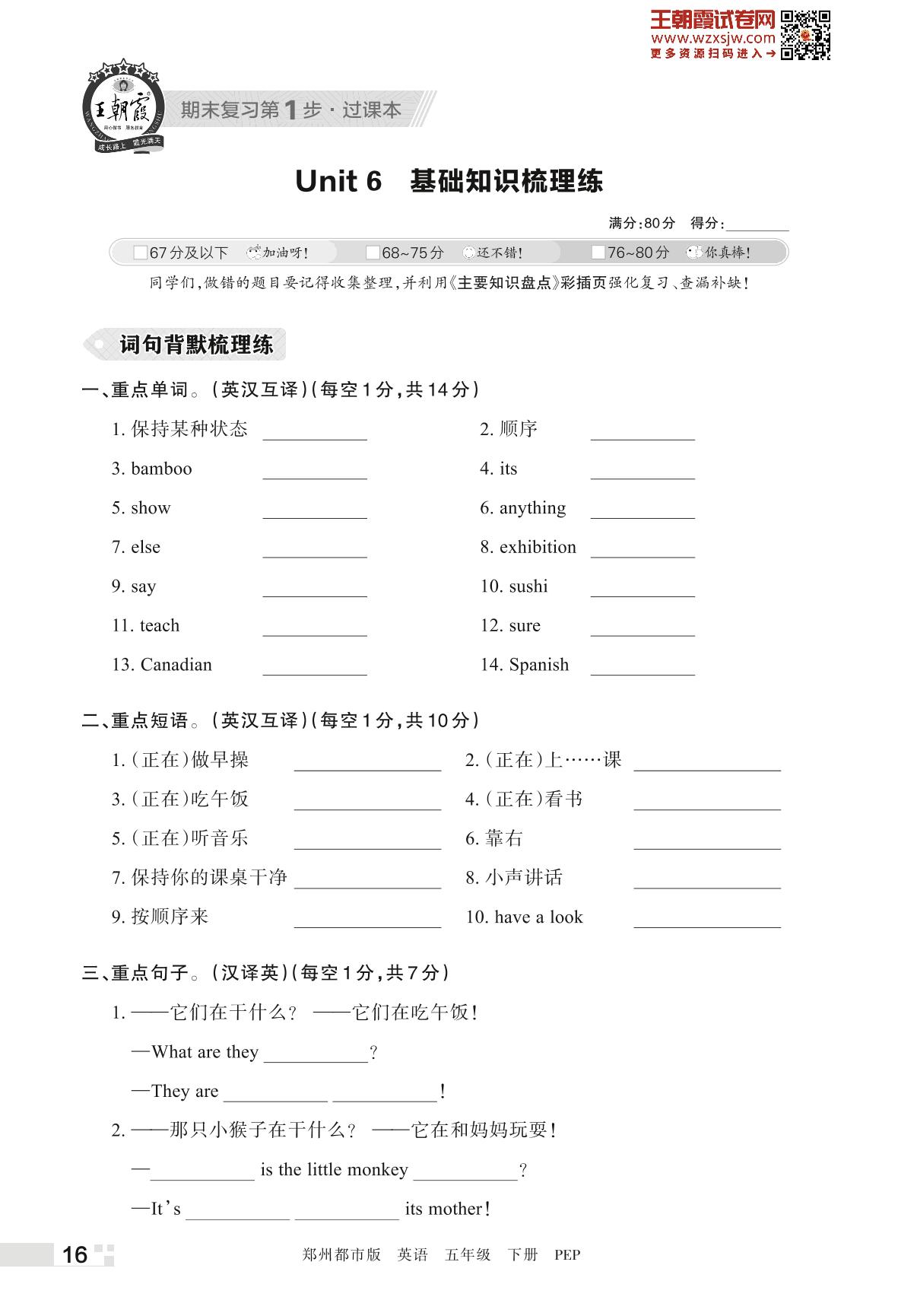 王朝霞期末过课本——Unit 6 基础知识梳理练五年级下册英语(PEP版)_R230424172735098