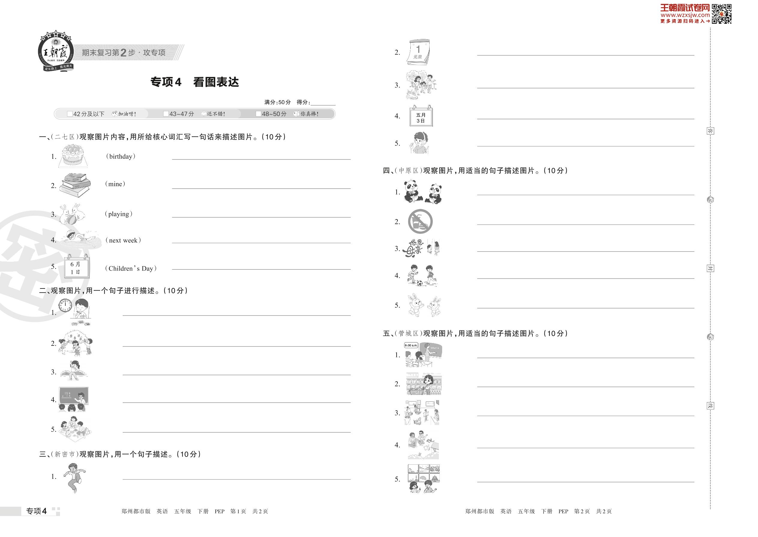 王朝霞期末专项卷——看图表达五年级下册英语(PEP版)_R230424172736434【4】