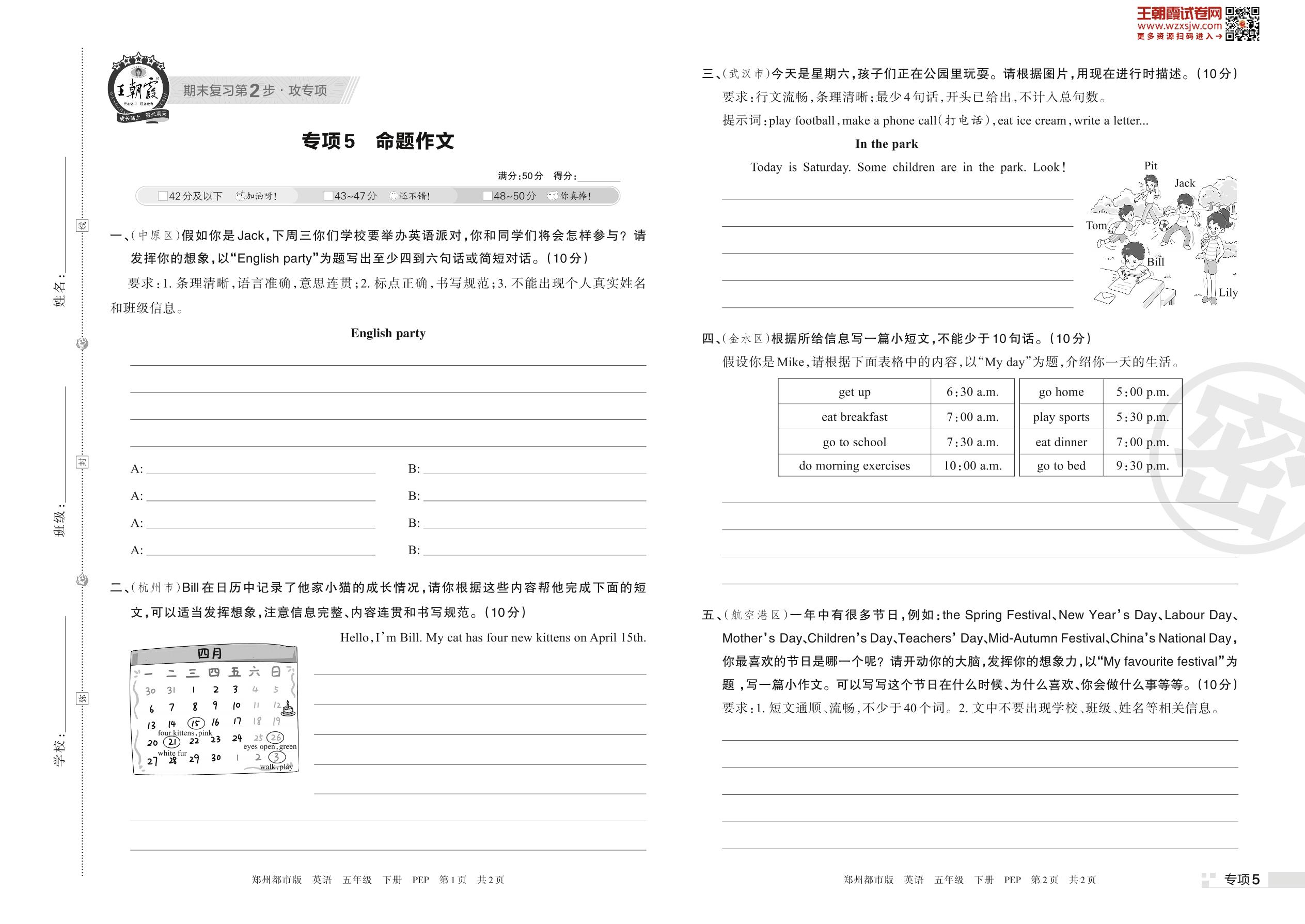 王朝霞期末专项卷——命题作文五年级下册英语(PEP版)_R230424172736816【5】