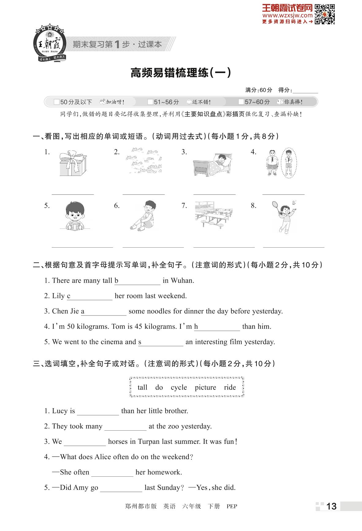 王朝霞期末过课本——高频易错梳理练(一)六年级下册英语(PEP版)_R230424173211725