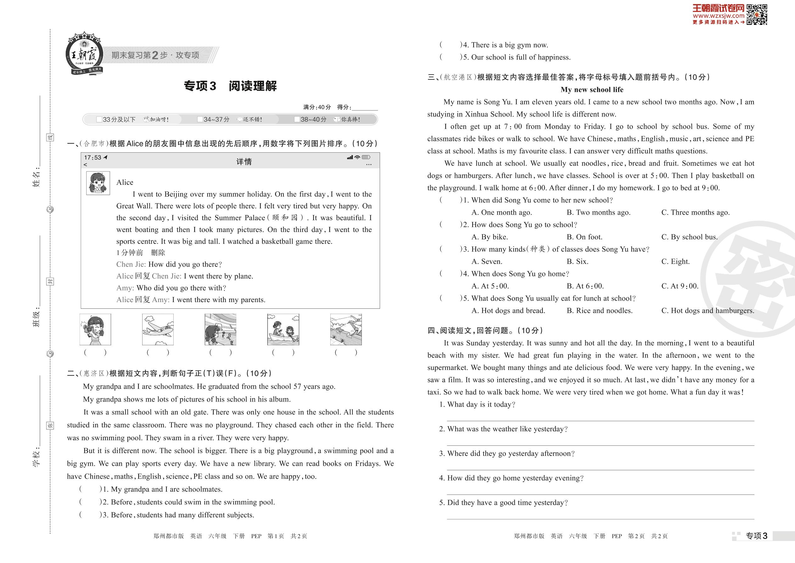 王朝霞期末专项卷——阅读理解六年级下册英语(PEP版)_R230424173212190【3】