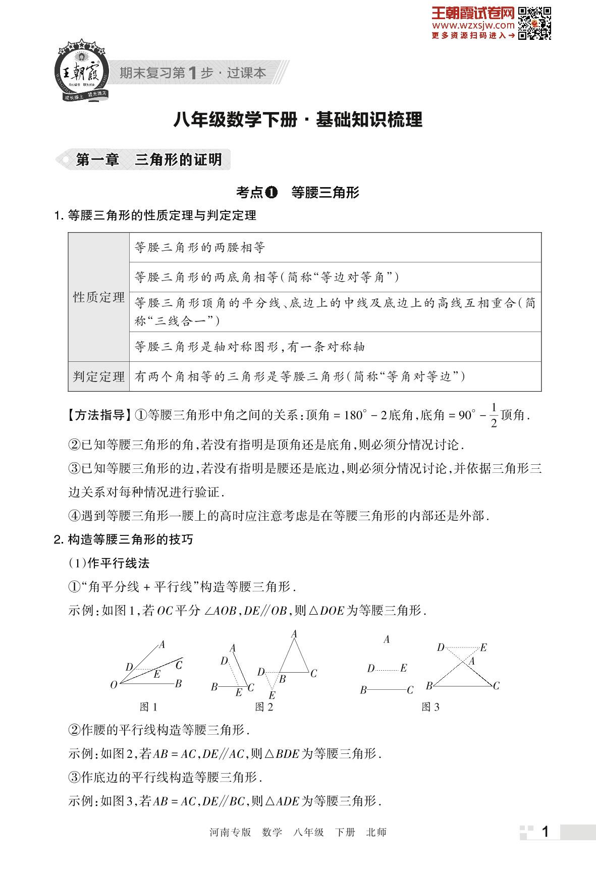 王朝霞期末知识梳理——第一章 三角形的证明八年级下册数学(北师版)_R230424173318219