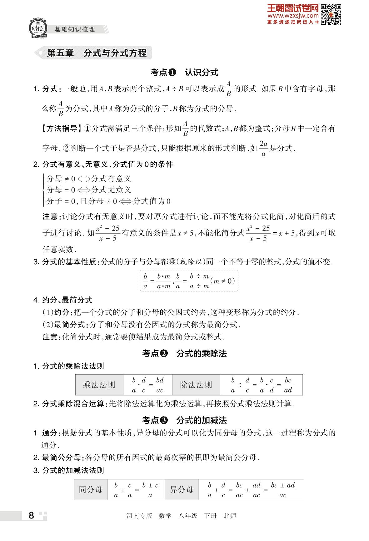 王朝霞期末知识梳理——第五章 分式与分式方程八年级下册数学(北师版)_R230424173318549