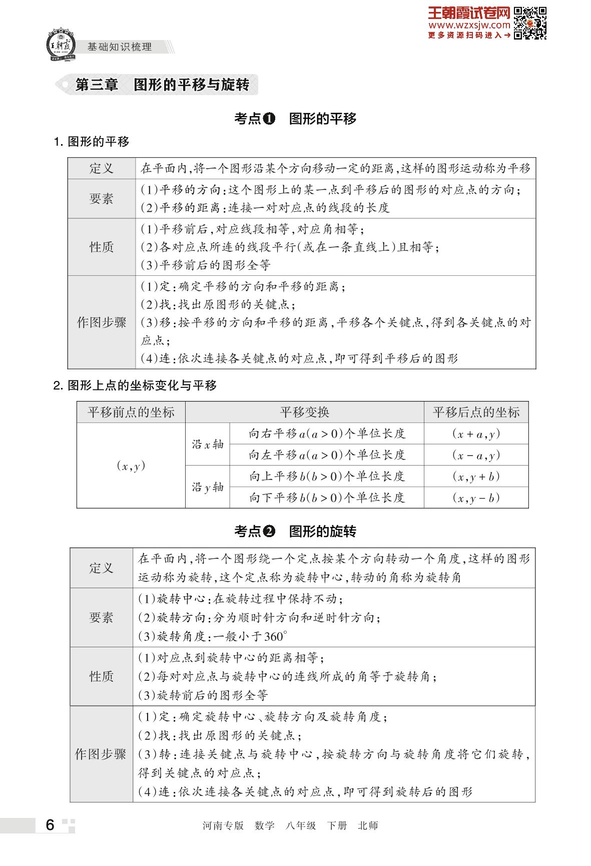 王朝霞期末知识梳理——第三章 图形的平移与旋转八年级下册数学(北师版)_R230424173318900