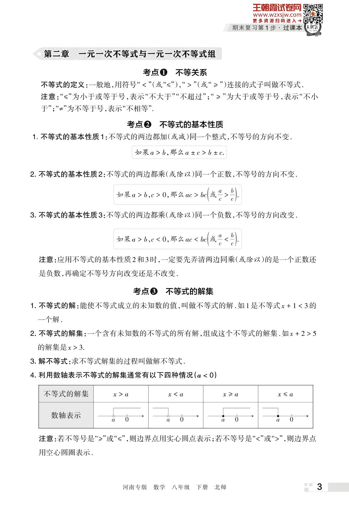 王朝霞期末知识梳理——第二章 一元一次不等式与一元一次不等式组八年级下册数学(北师版)_R230424173319786