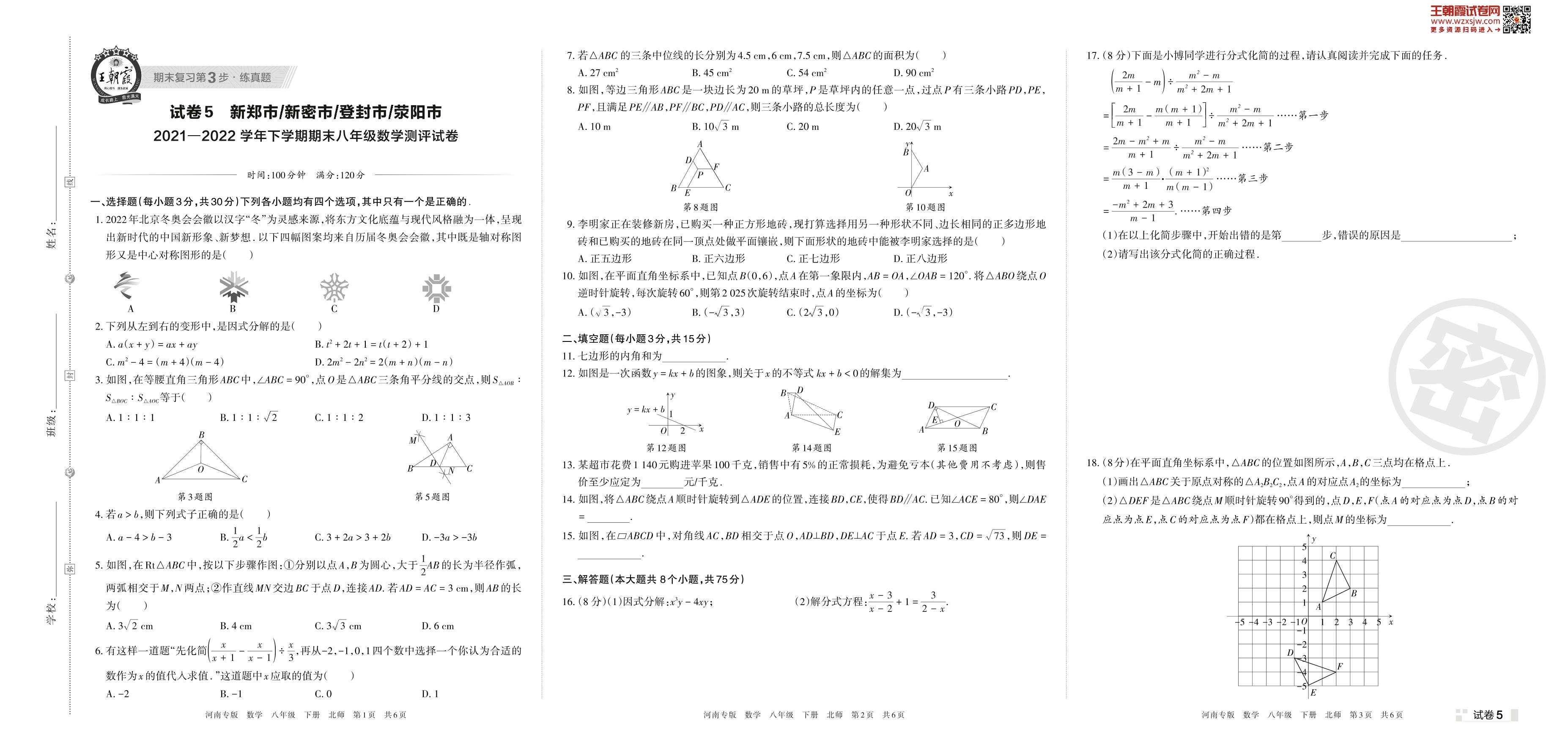 新郑市、新密市、登封市、荥阳市2021—2022 学年下学期期末八年级数学测评试卷(北师版)【5】