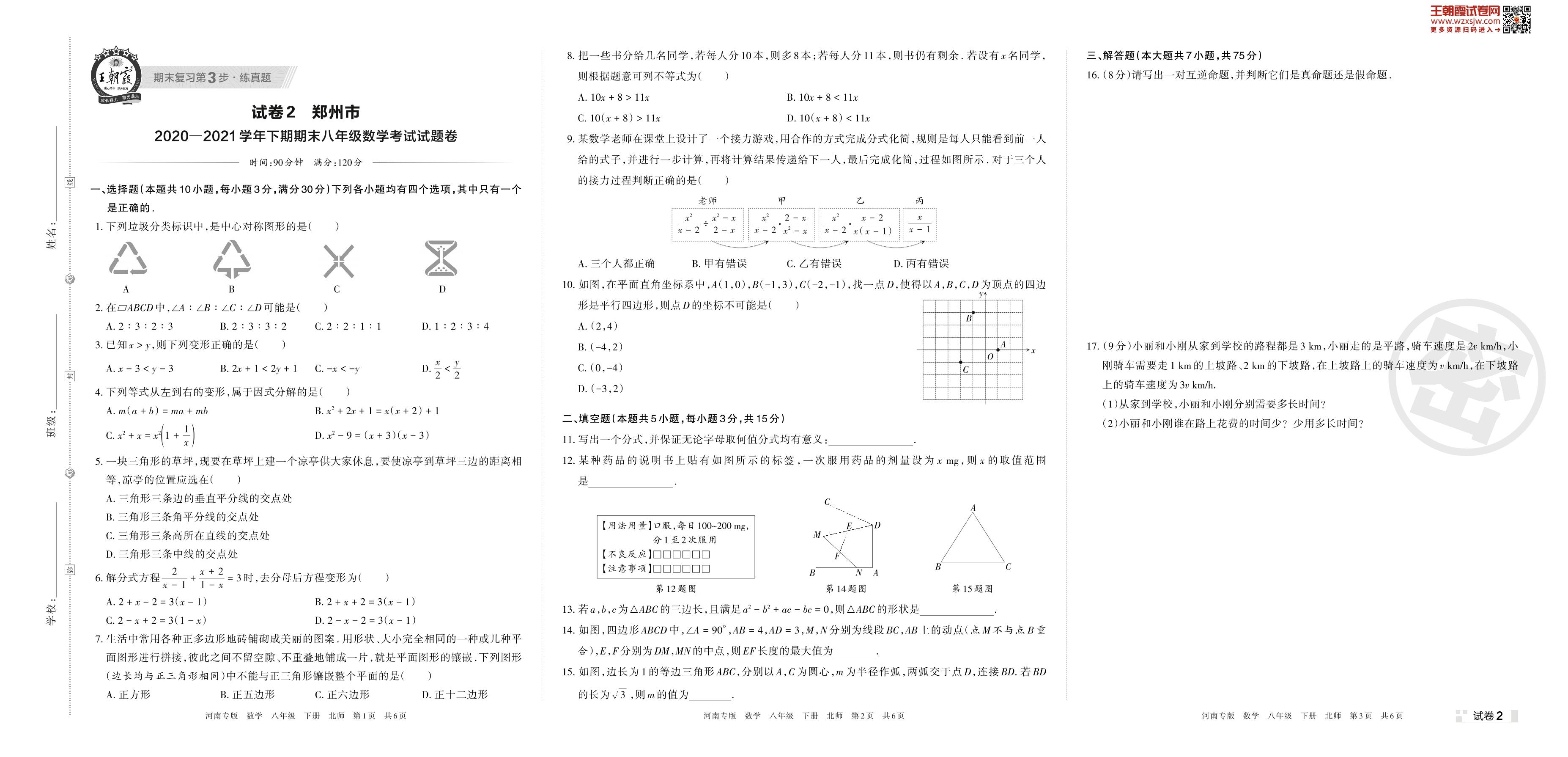 郑州市2020—2021学年下期期末八年级数学考试试题卷(北师版)【2】