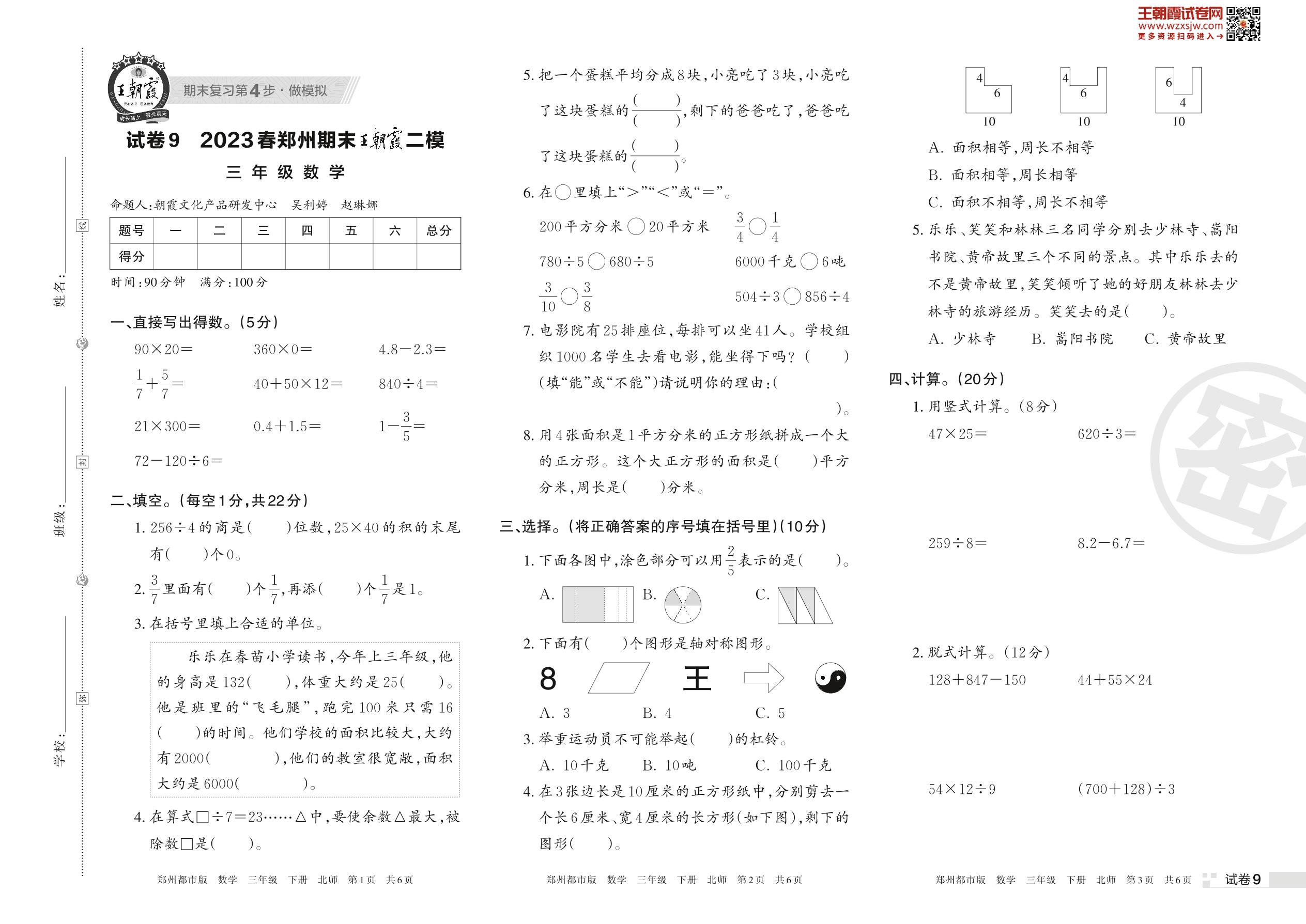王朝霞期末模拟卷三年级下册数学(北师版)_R230424173834235【9】