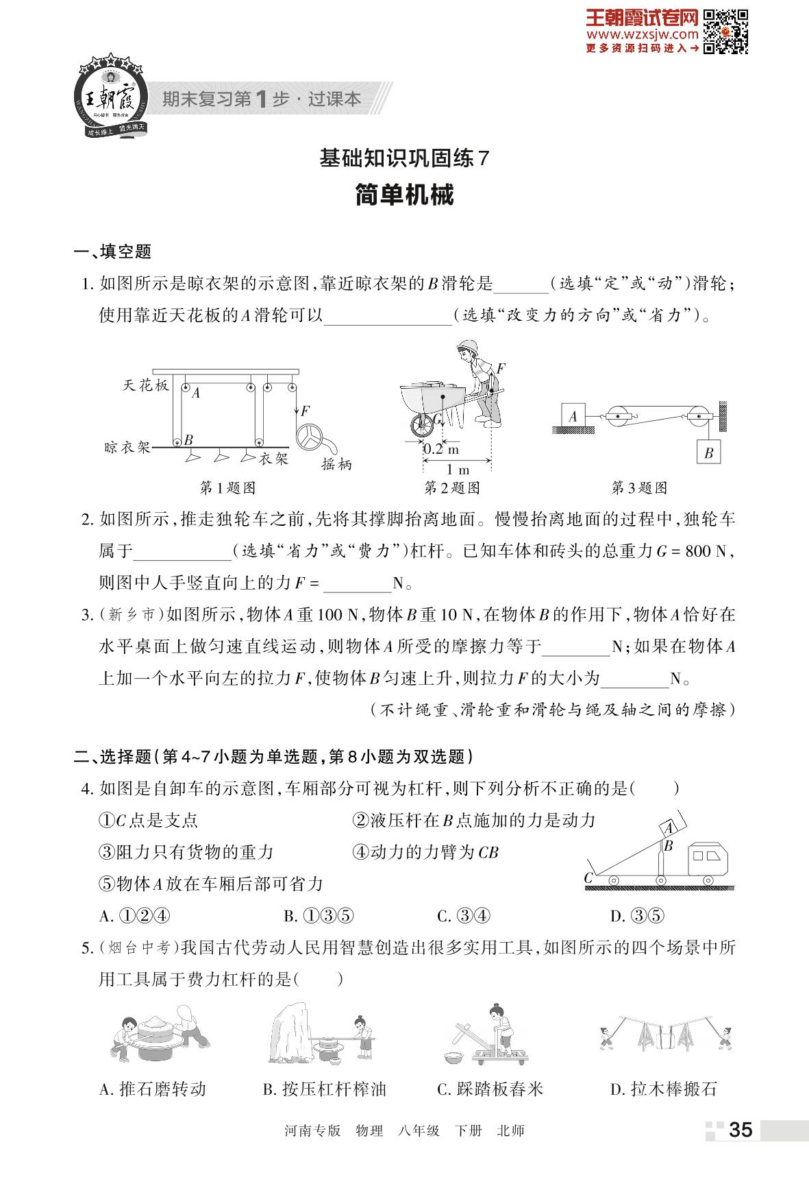 王朝霞期末过课本——基础知识巩固练7 简单机械八年级下册物理(北师版)_R230424174314234