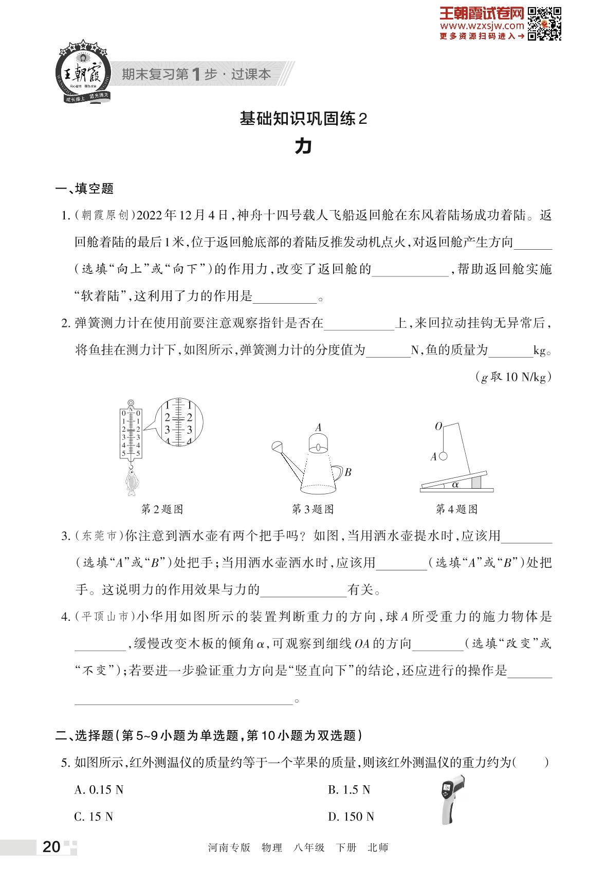王朝霞期末过课本——基础知识巩固练2 力八年级下册物理(北师版)_R230424174314872