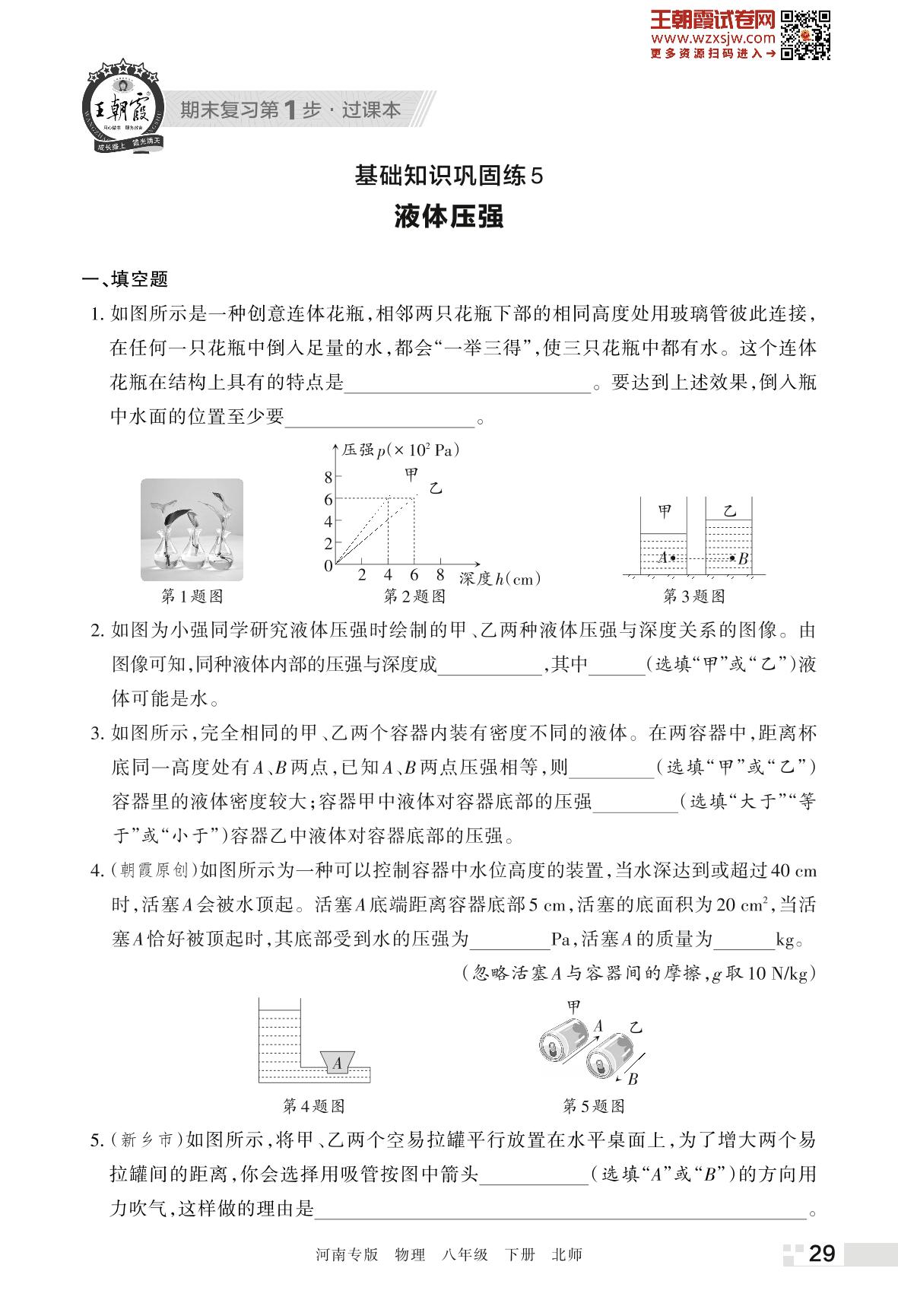 王朝霞期末过课本——基础知识巩固练5 液体压强八年级下册物理(北师版)_R230424174314270