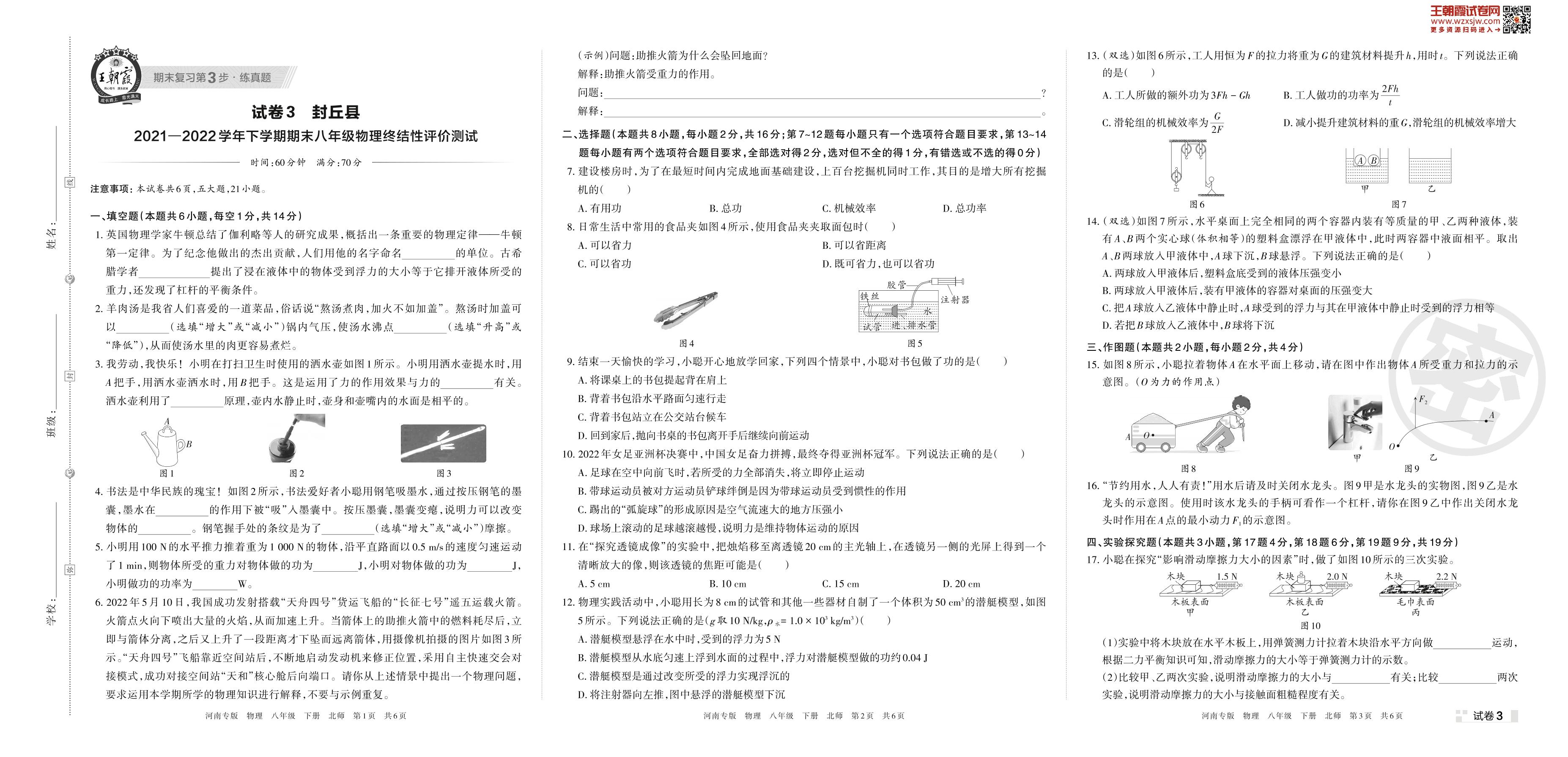 封丘县2021—2022学年下学期期末八年级物理终结性评价测试(北师版)【3】