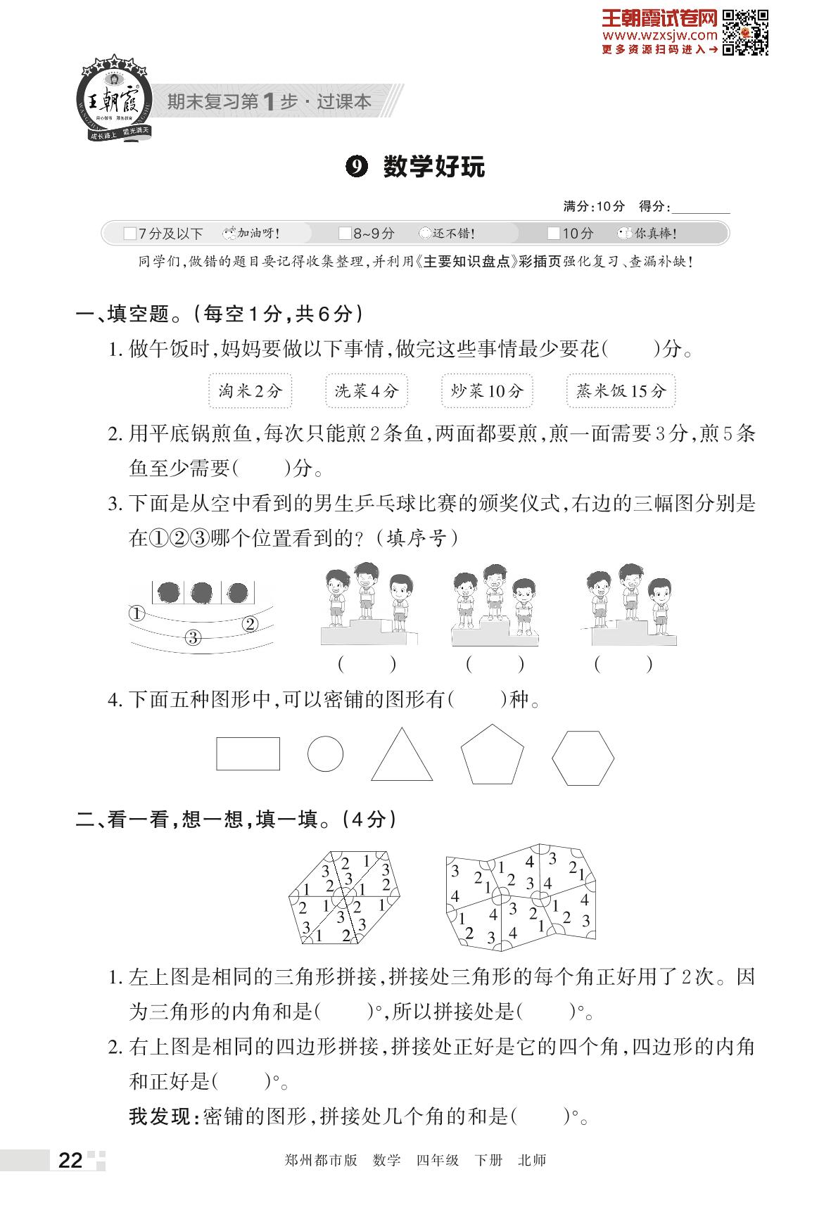 王朝霞期末过课本——9 数学好玩四年级下册数学(北师版)
