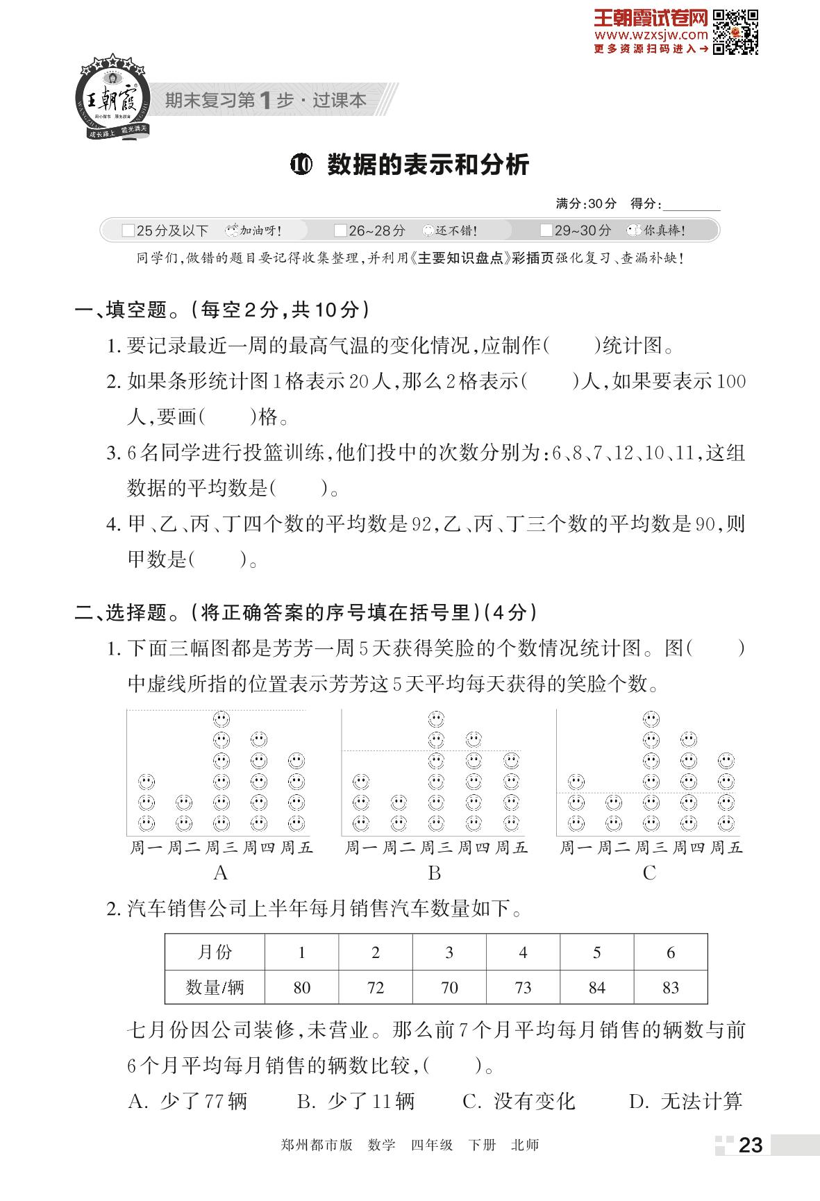 王朝霞期末过课本——10 数据的表示和分析四年级下册数学(北师版)