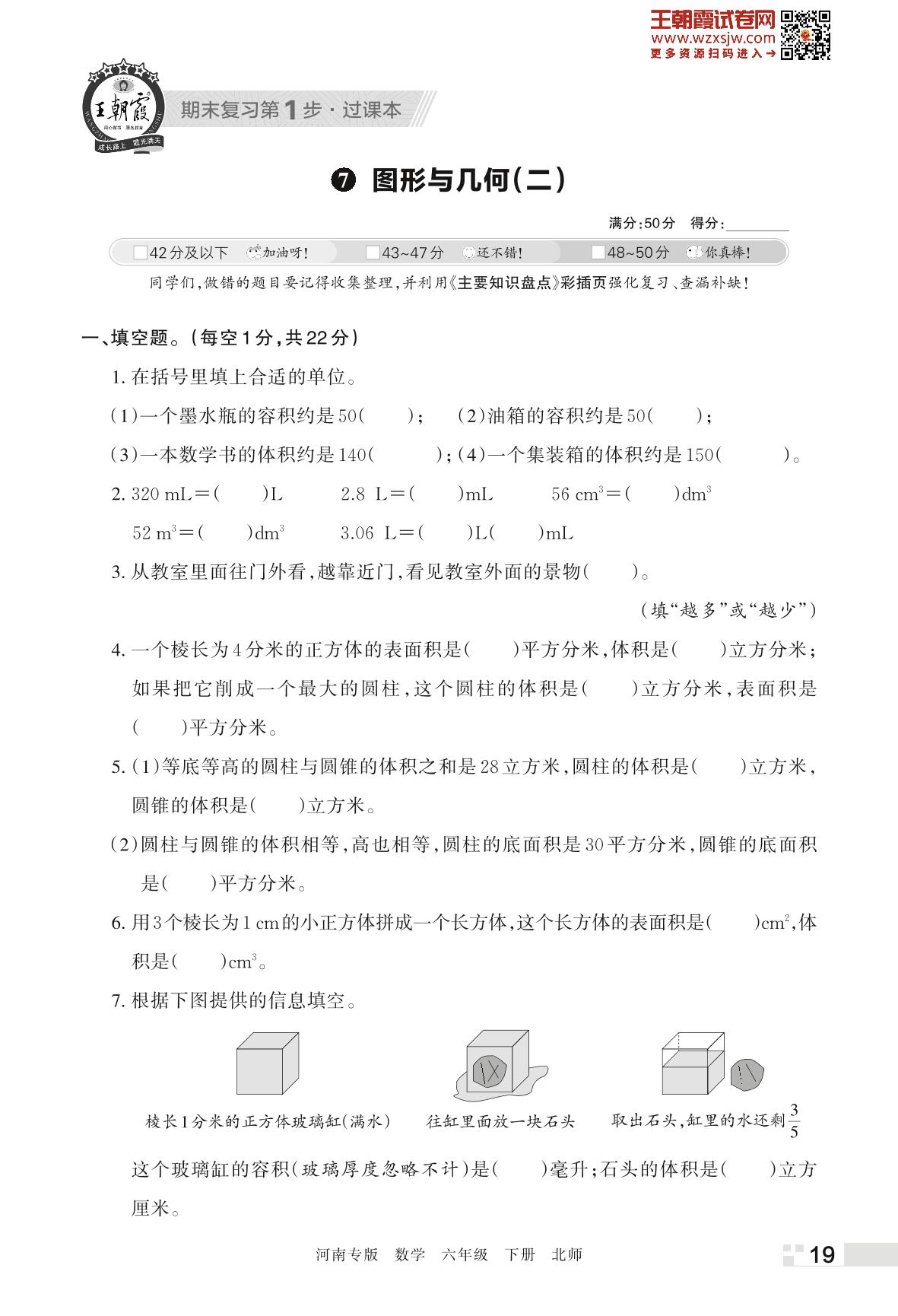 王朝霞期末过课本——7 图形与几何(二)六年级下册数学(北师版)_R230424175056397