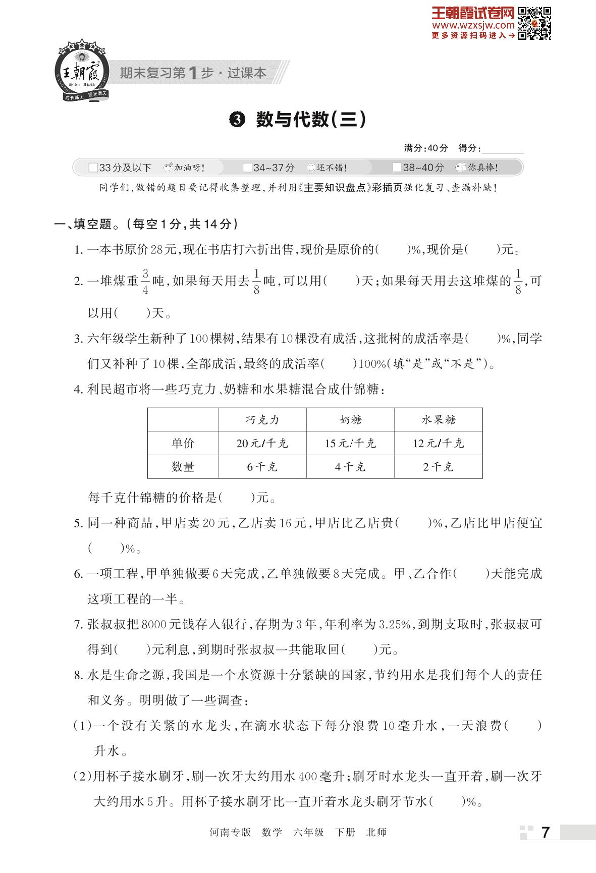 王朝霞期末过课本——3 数与代数(三)六年级下册数学(北师版)_R230424175056022