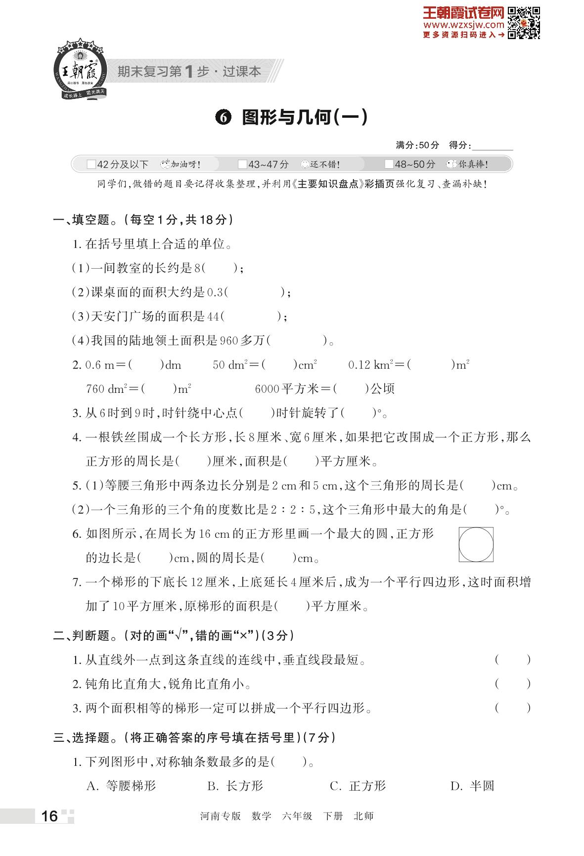 王朝霞期末过课本——6 图形与几何(一)六年级下册数学(北师版)_R230424175056852