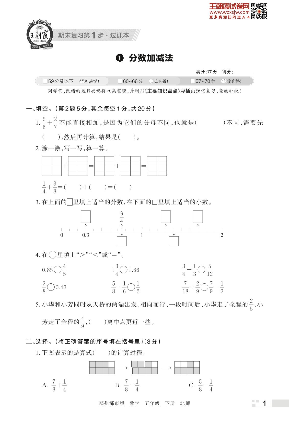 王朝霞期末过课本——1 分数加减法五年级下册数学(北师版)