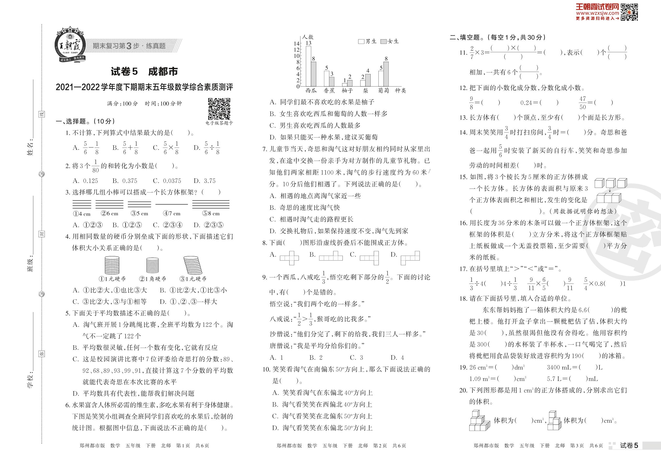 成都市2021—2022学年度下期期末五年级数学综合素质测评(北师版)【5】